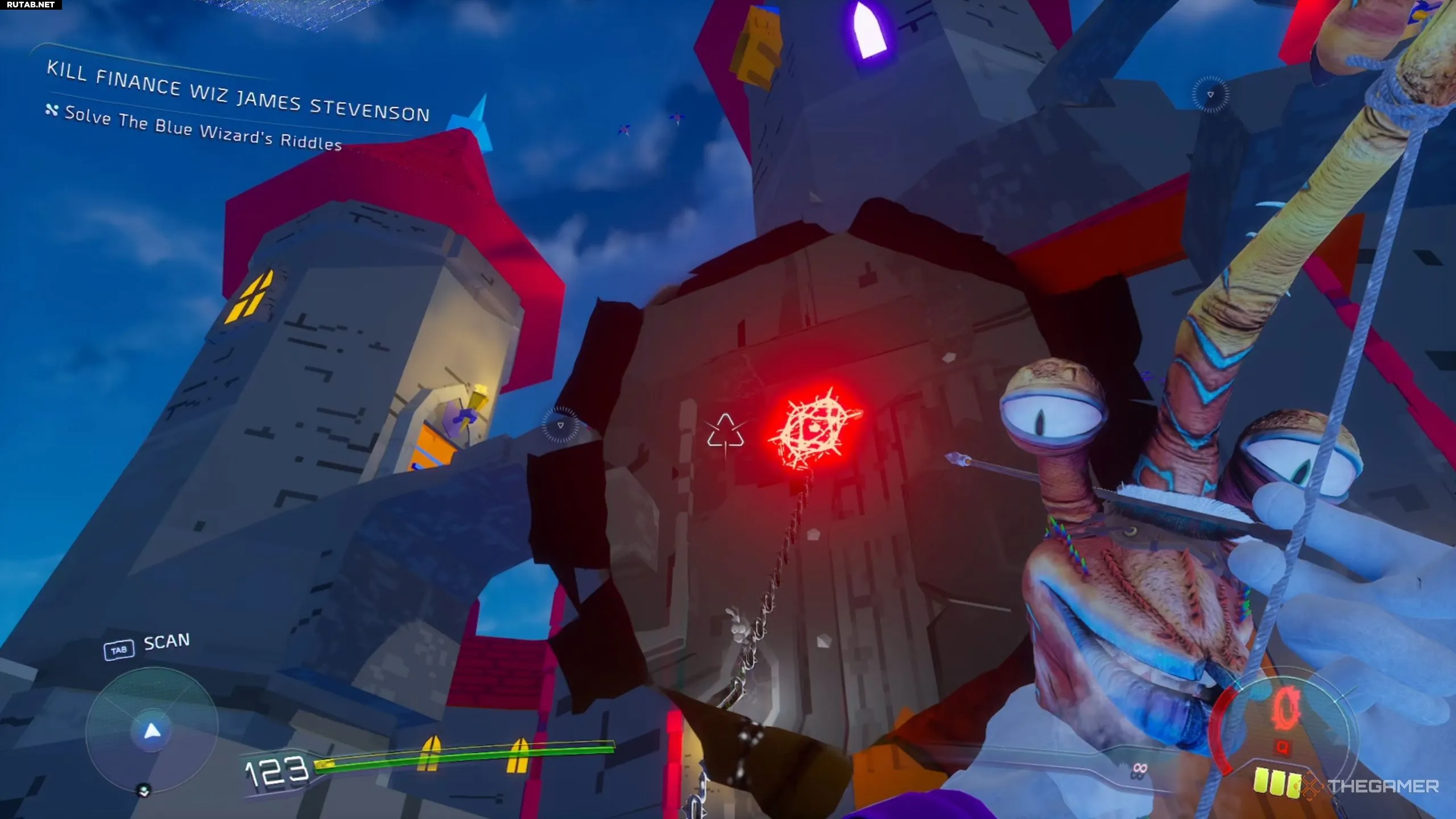 Наконец, достаньте Шиза и используйте его способность, чтобы соединить начальную точку генератора с этими двумя ячейками, а затем со слизью. Осталось запрыгнуть на слизь и попасть в цветок внутри, чтобы активировать конечную точку этой цепи. Это откроет дверь внизу, где можно активировать два моста и использовать их, чтобы добраться до пентхауса.