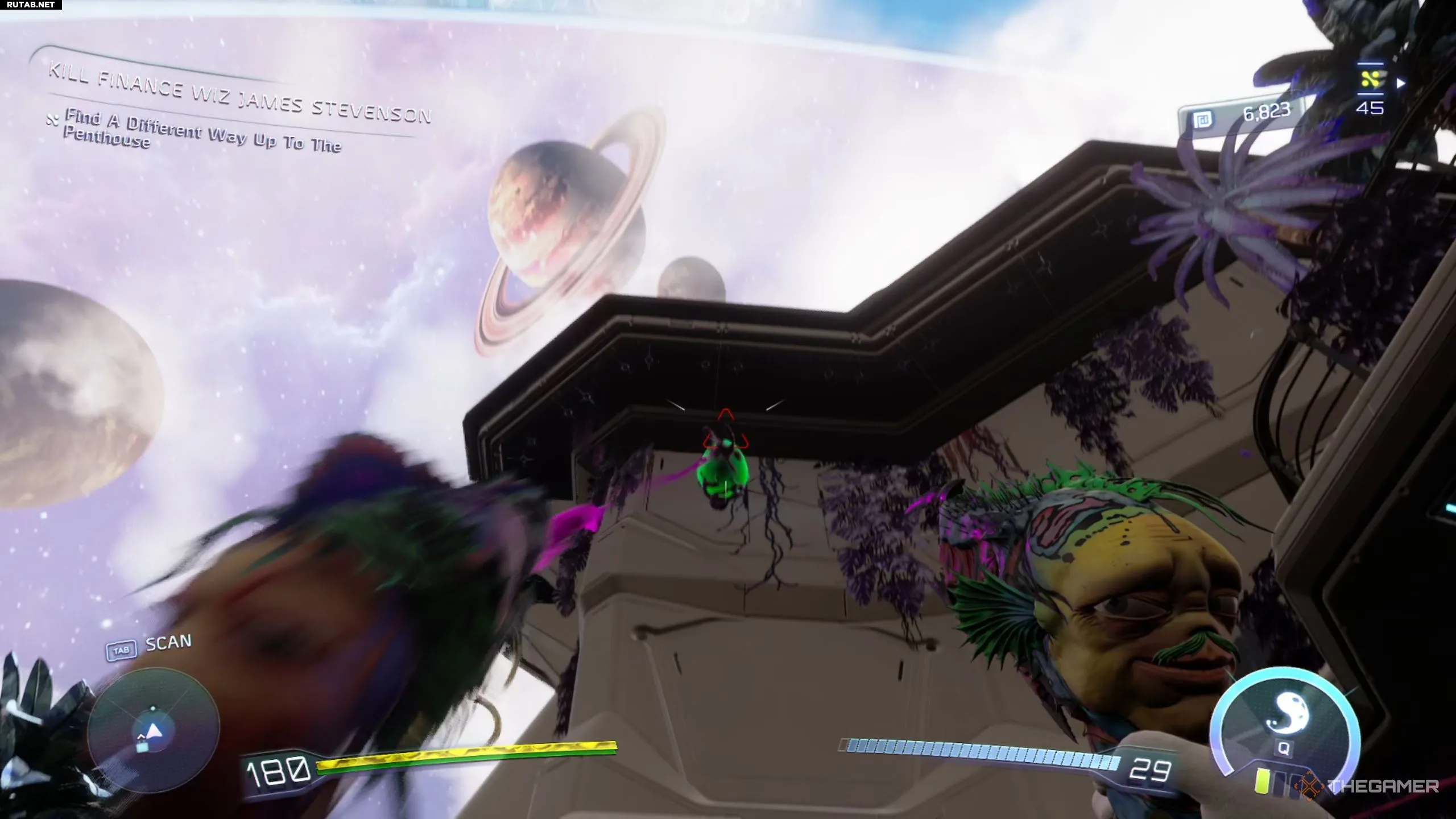 После того как вы начнете задание на поимку Джеймса Стивенсона, сначала нужно добраться до Аркадии и использовать трекер, чтобы найти его пентхаус, куда вам откажутся пустить. Выйдите от пентхауса, и вы увидите рядом огромный грузовик. Используйте способность Трэвиса и Джана «левитация», чтобы поднять этот грузовик вверх, после чего можно запрыгнуть на него с помощью матраса неподалёку.
