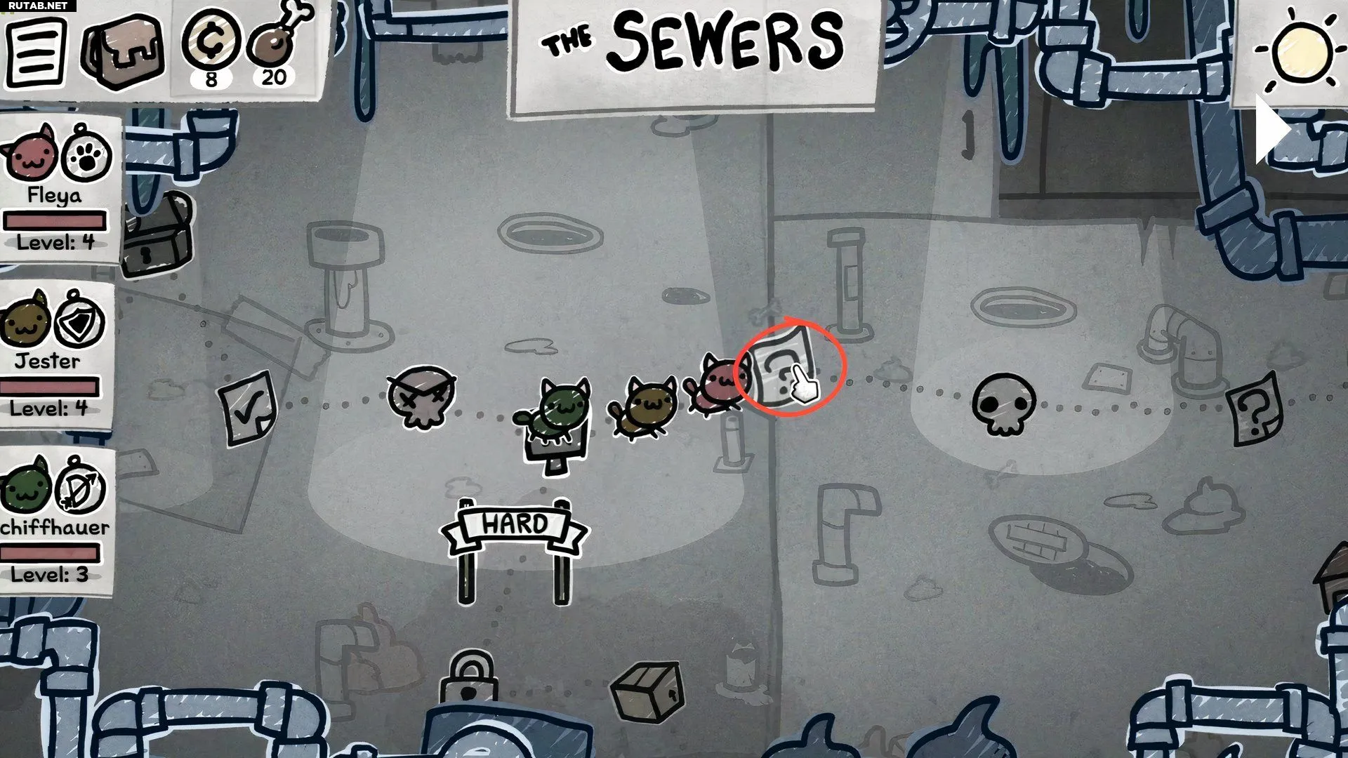 Чтобы получить Неверстоун, нужно проходить главы и ждать появления специальных случайных событий, которые наградят вас дополнительным котом для текущего забега. Этот кот будет уже экипирован Неверстоуном, и вы сможете сразу переложить камень в инвентарь.