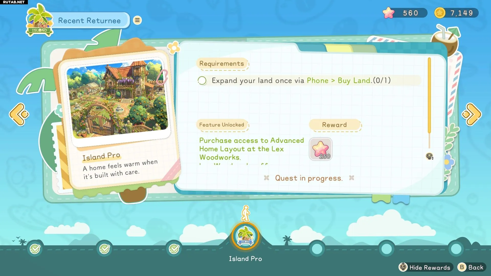 - Соберите 2000 коинов и познакомьтесь с десятью островитянами. Продавайте лишние предметы торговцам и общайтесь с NPC на карте, чтобы выполнить это задание.