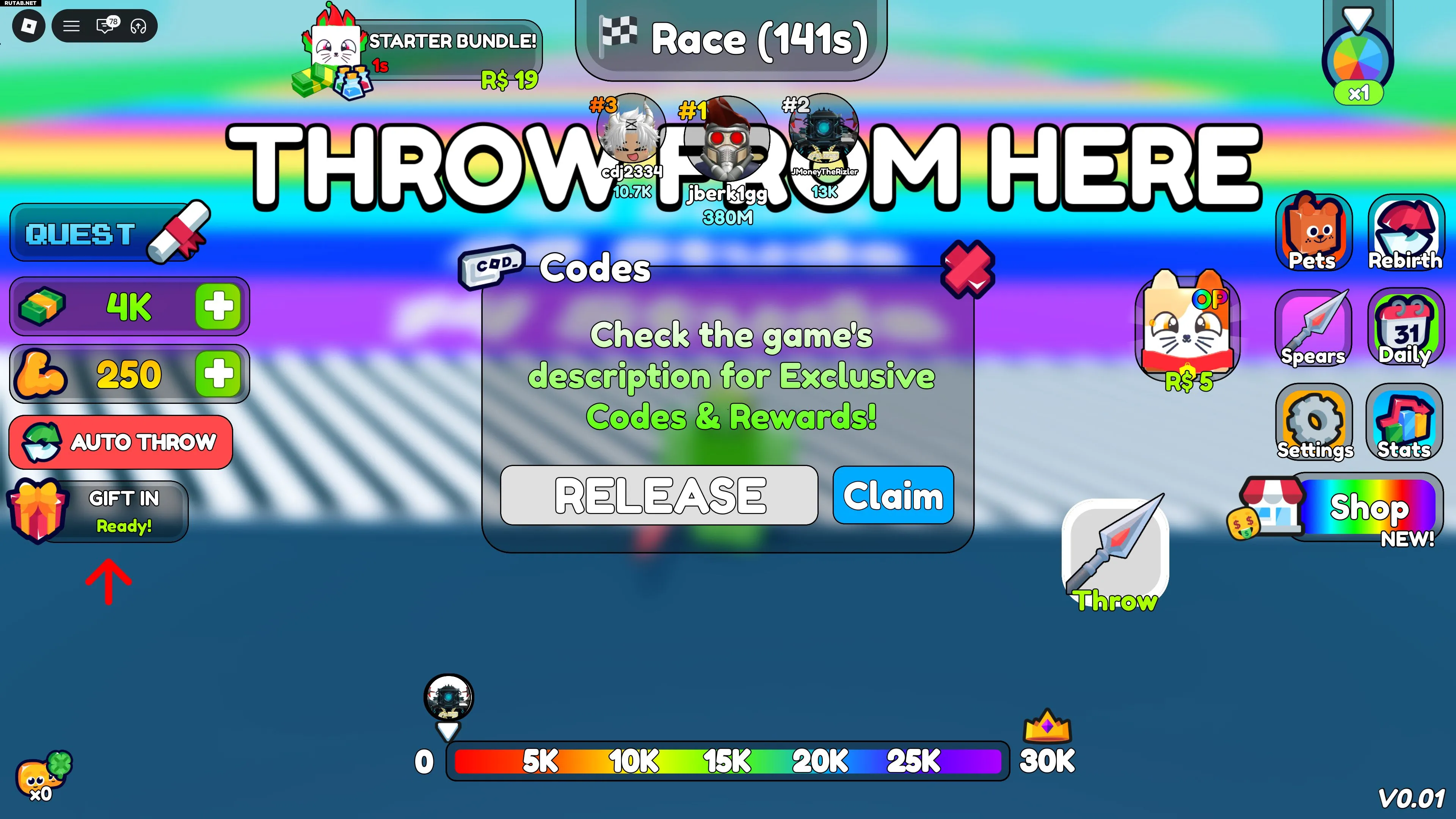 Коды для Roblox Spear Training