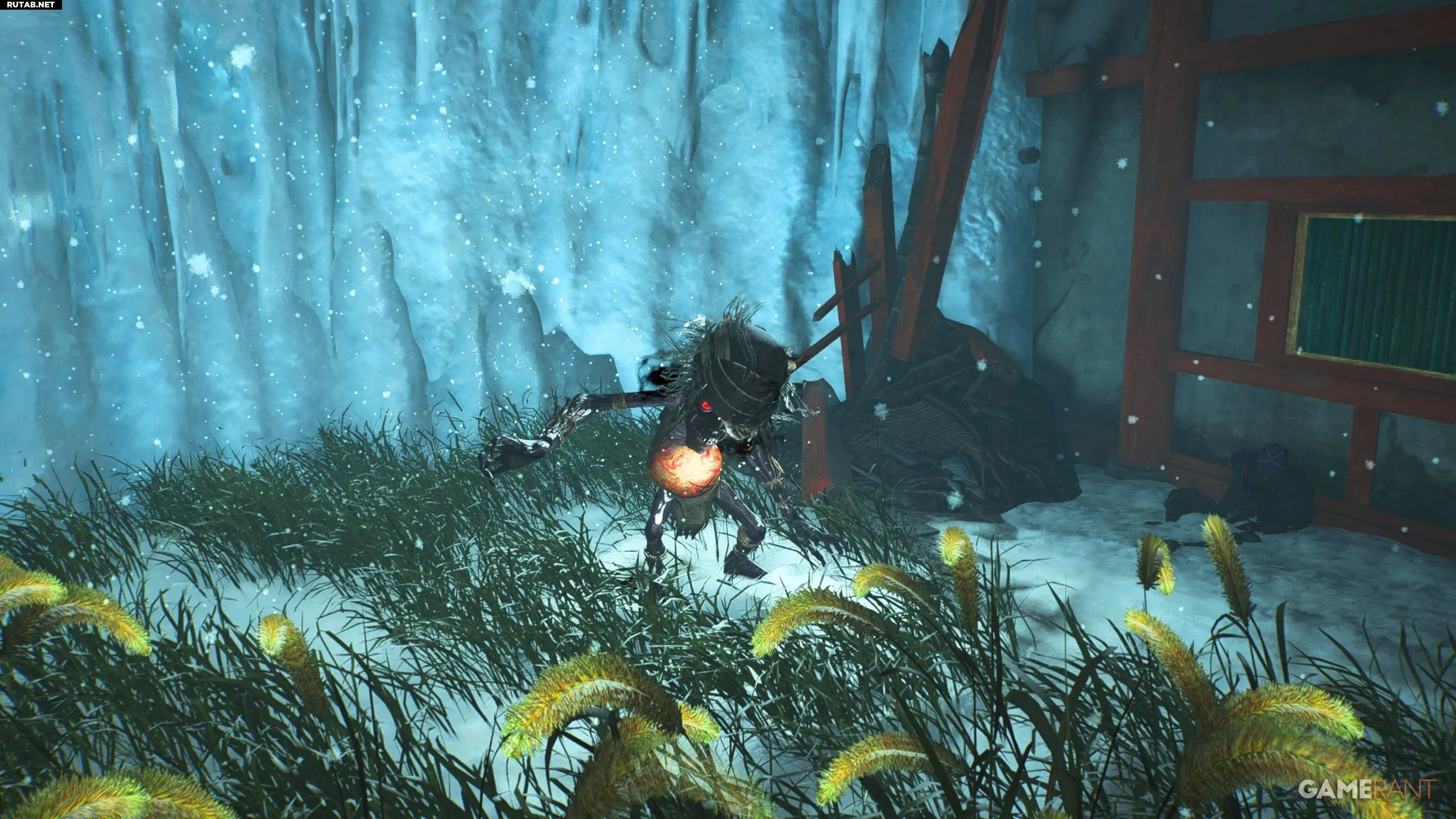 Достигнув Святилища Мацуо-тайся: Пещера Аскета, идите по тропе. В конце сверните направо, и перед вами окажутся ворота Тори. Пока проигнорируйте их и посмотрите справа от них: вы увидите бамбук, который можно сломать. Пройдите дальше, чтобы найти Горнильного Призрака.
