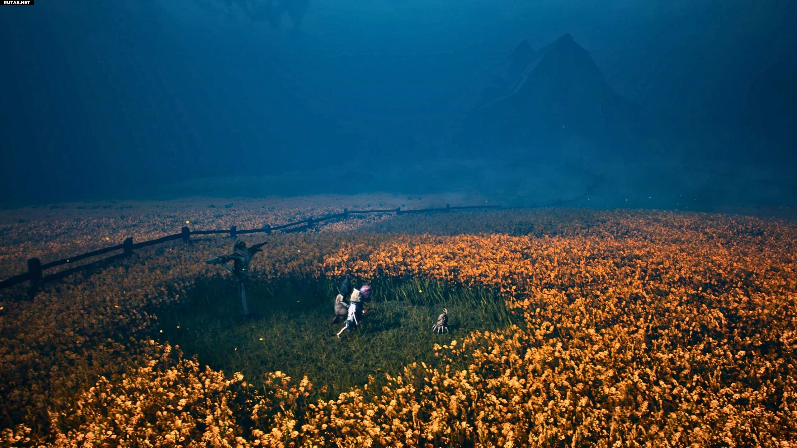 После лодочной секции и подъёма по длинной лестнице вы окажетесь на поле с цветами. Не идите вперёд, а поверните налево и идите, пока не увидите вдалеке пугало.
