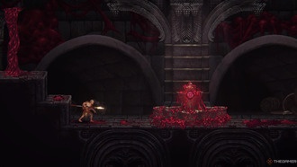 Он также заставит веерообразные кровавые снаряды, которые выпускает из угла экрана, развернуться и вернуться к его позиции. Это значит, что вам нужно будет прокатиться сквозь обе волны, чтобы избежать попадания, но если вы окажетесь прямо под ним в начале атаки, у вас будет короткое окно для контратаки.