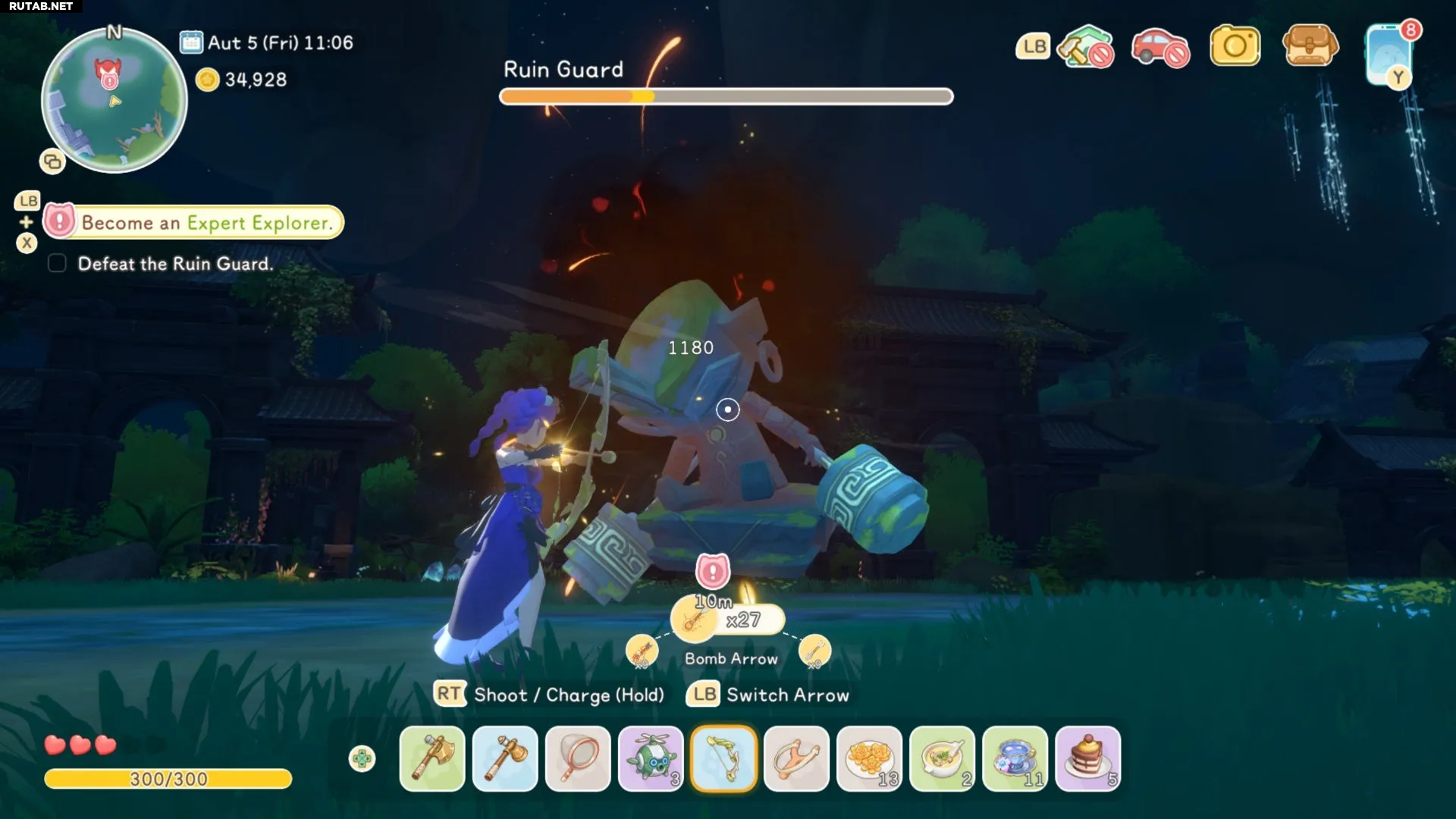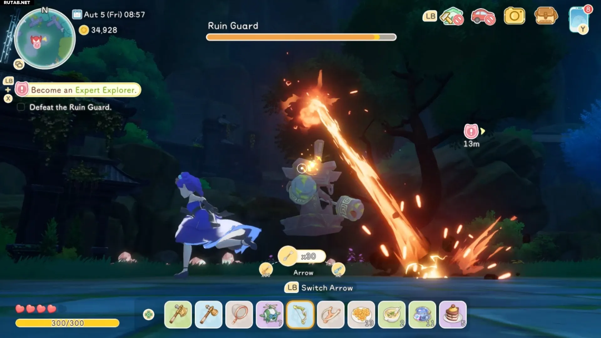 Страж Руин — это финальный босс Лунного Леса, который станет серьёзным испытанием, если у вас с собой недостаточно боеприпасов. Мы рекомендуем перед началом битвы запастись как минимум луком и несколькими взрывными стрелами. Когда будете готовы — пора в бой!