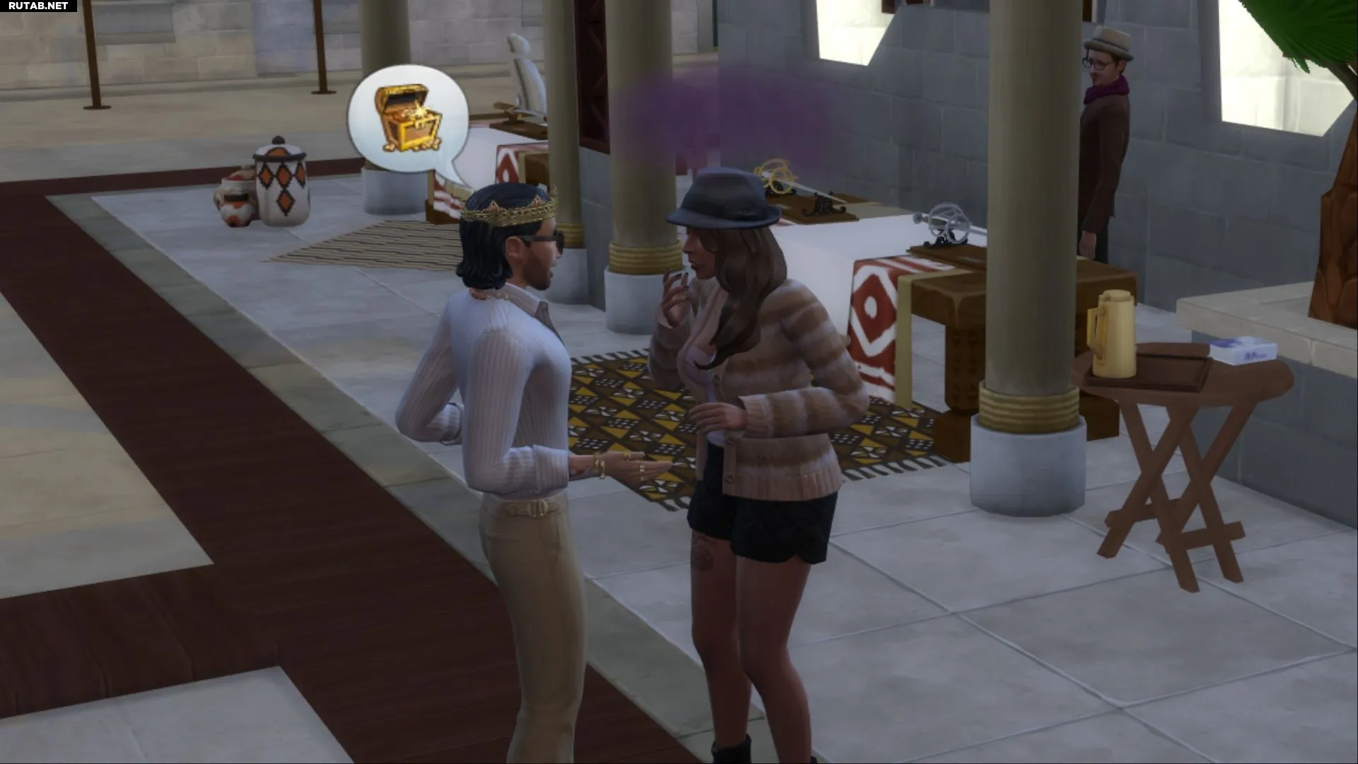 - Подсказка в настроении: «[Этому симу] нужно совершить обманчивый поступок под пристальным взглядом Ананси. Это испытание покажет, умен ли он или просто запутался в глупости».