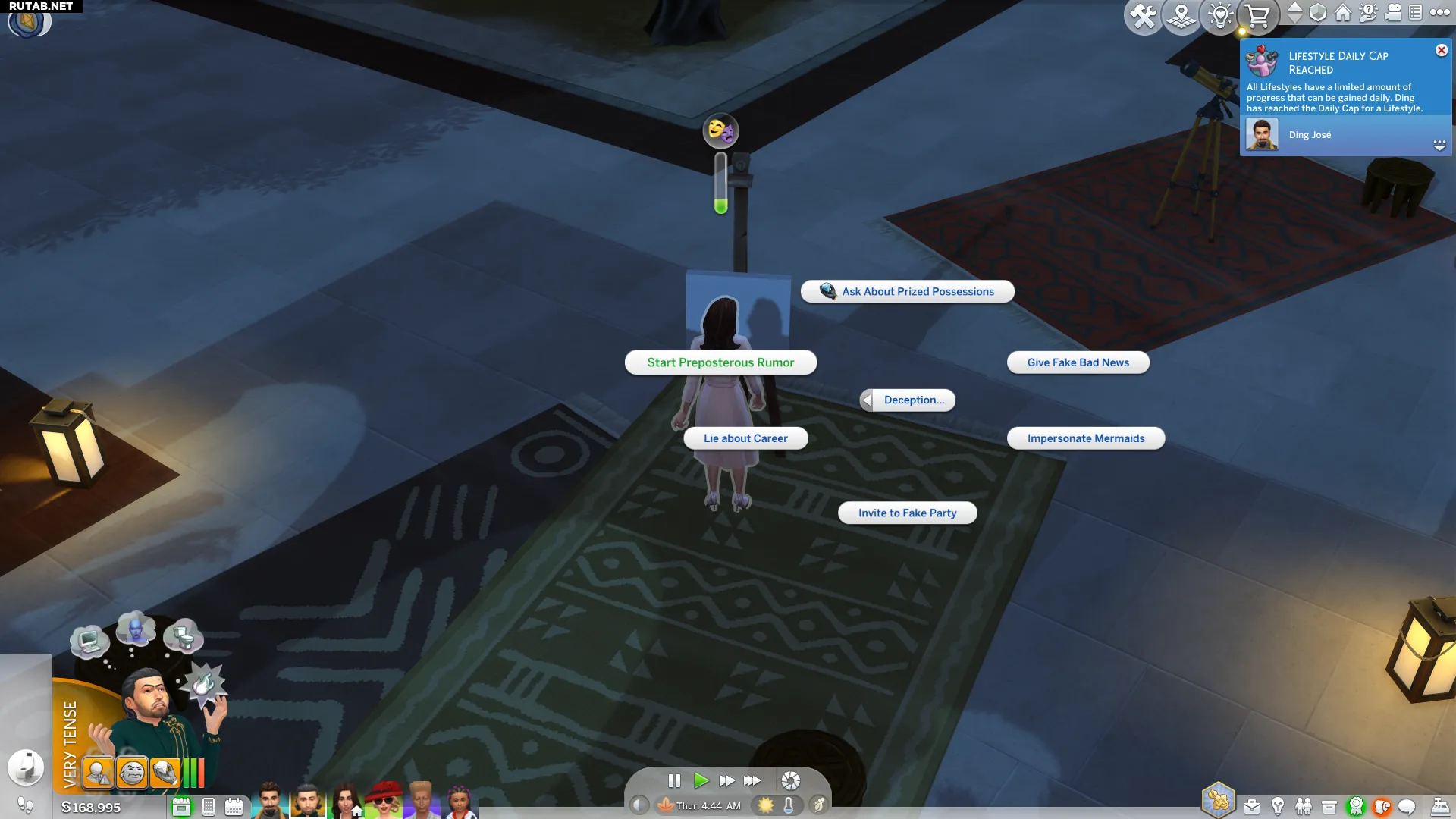 - Третье испытание: Использовать на симе взаимодействие из раздела «Пакости» — «Обман».