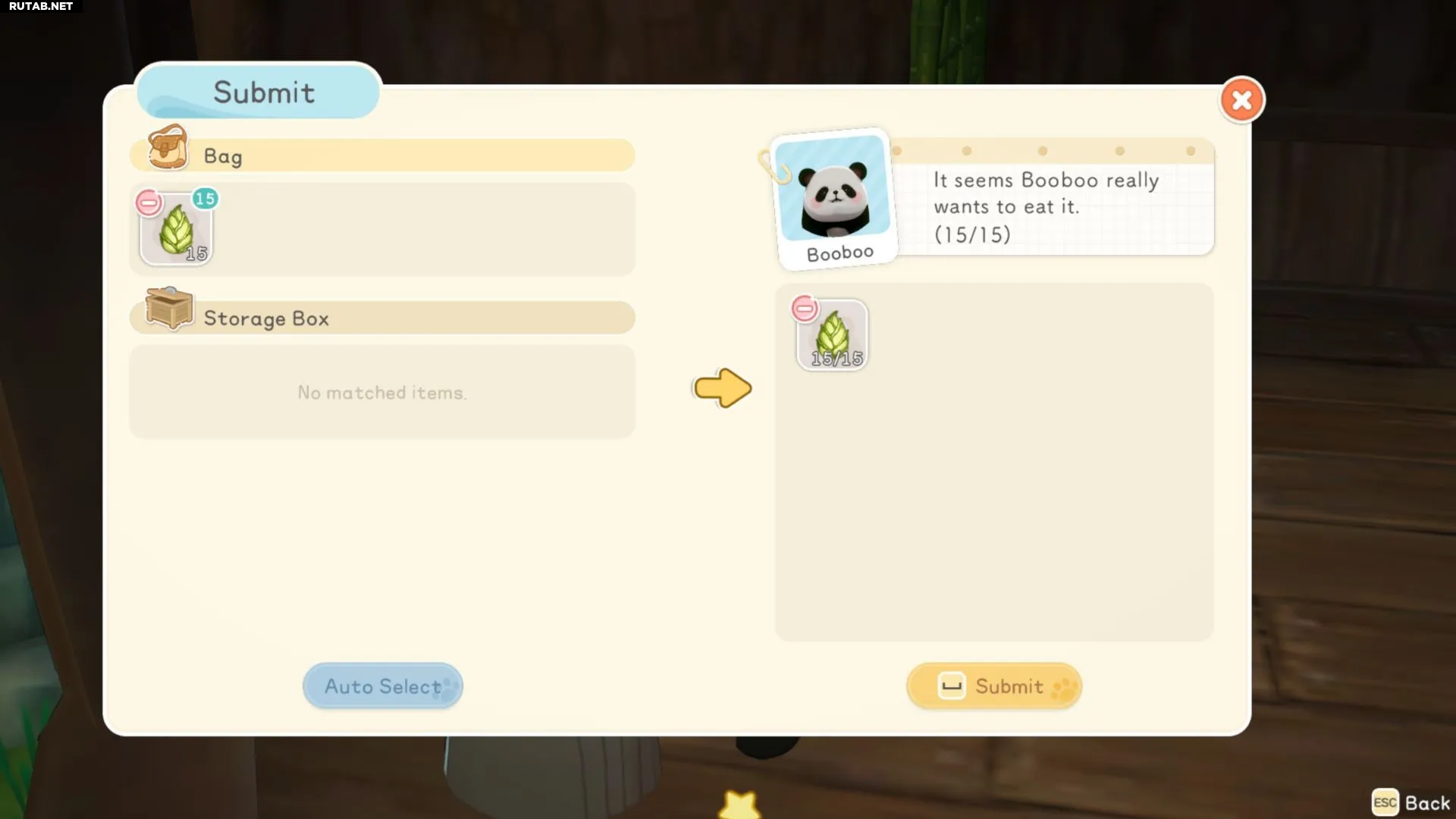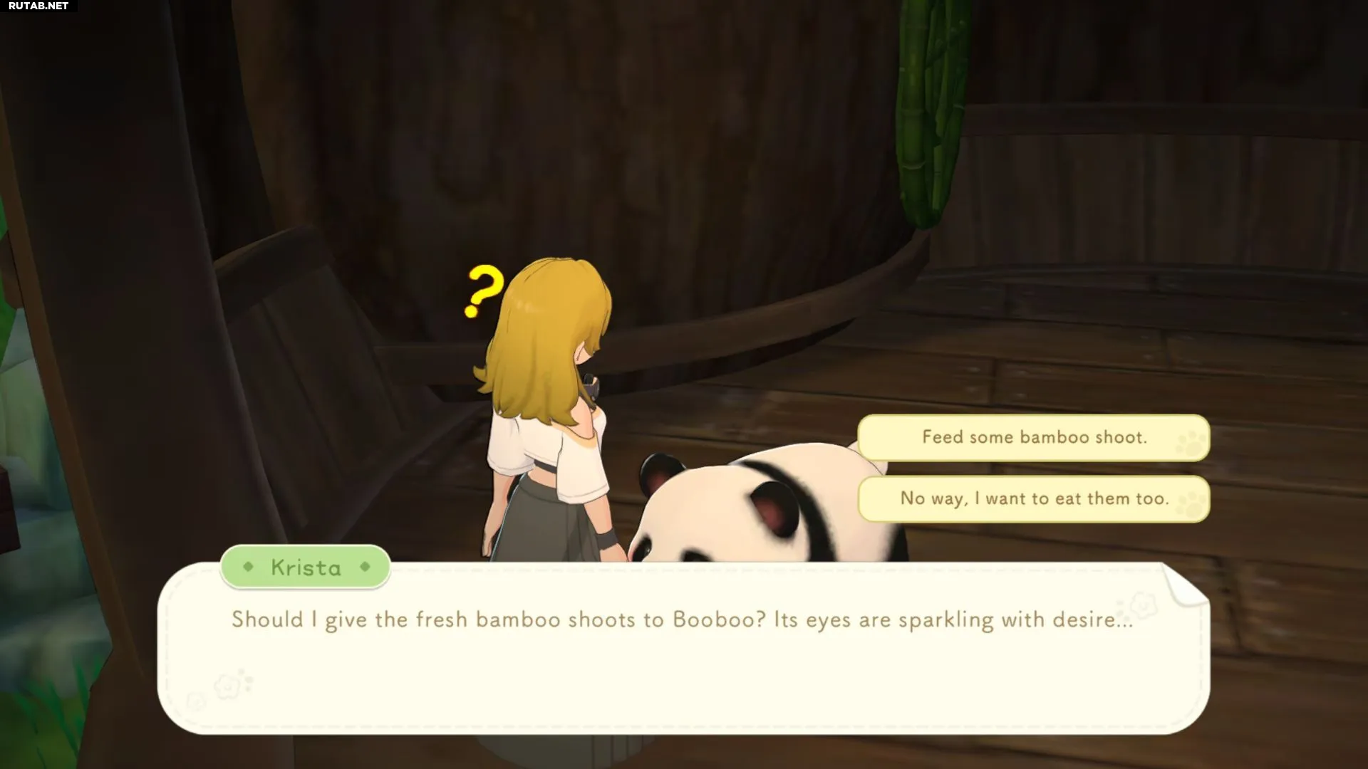 Дружба с пандой Бубу заводится иначе, чем с другими животными на острове. Вместо того чтобы сразу гладить и кормить её, игрокам сначала нужно собрать