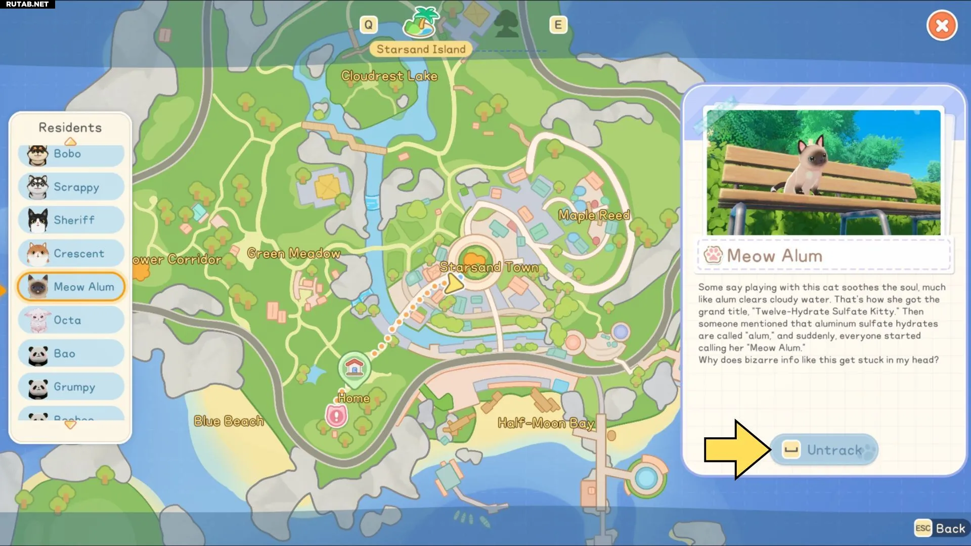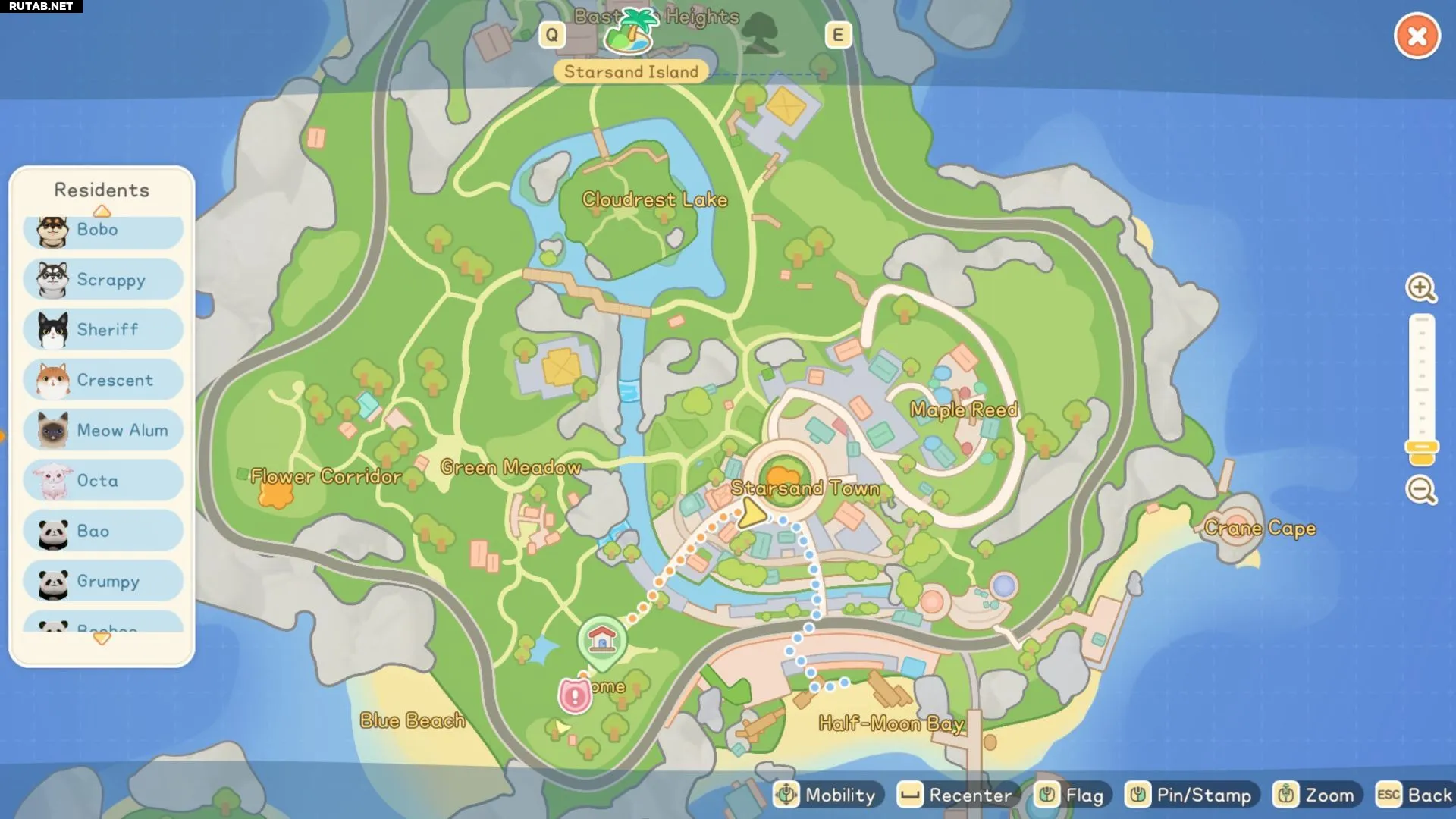 Самый простой способ найти любое животное — посмотреть на его значок на игровой карте. Поскольку многие из них находятся в Городе Звёздного песка, их значки могут быть перекрыты зданиями или значками жителей. Чтобы избежать этого, используйте кнопку «Жители» в левой части карты, чтобы напрямую посмотреть местоположение любого животного.