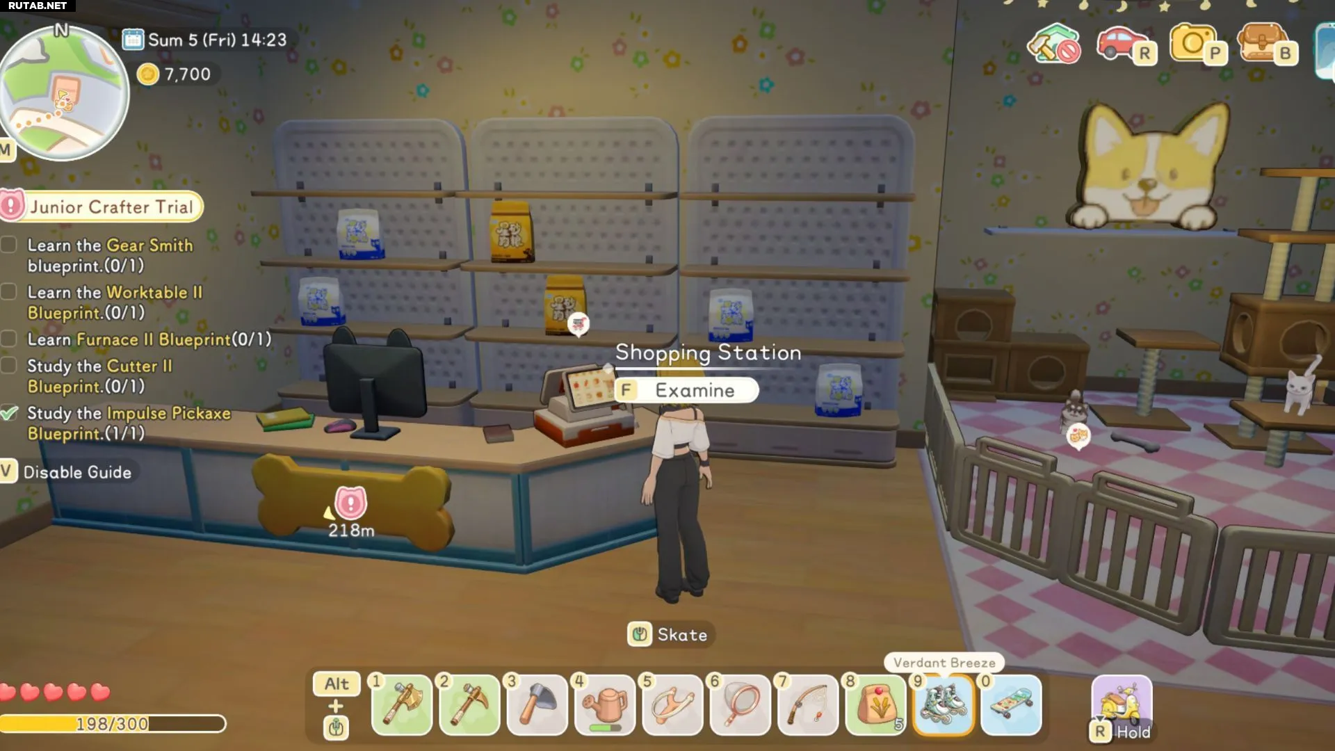 Стелла оставит вам рецепт бамбуковой кроватки для питомца в виде кошачьих ушек. Создайте эту кроватку и отнесите её в магазин Стеллы, «Woof and Wow Pets». Поговорите с ней, держа кроватку в руках, чтобы усыновить котёнка по имени 404.