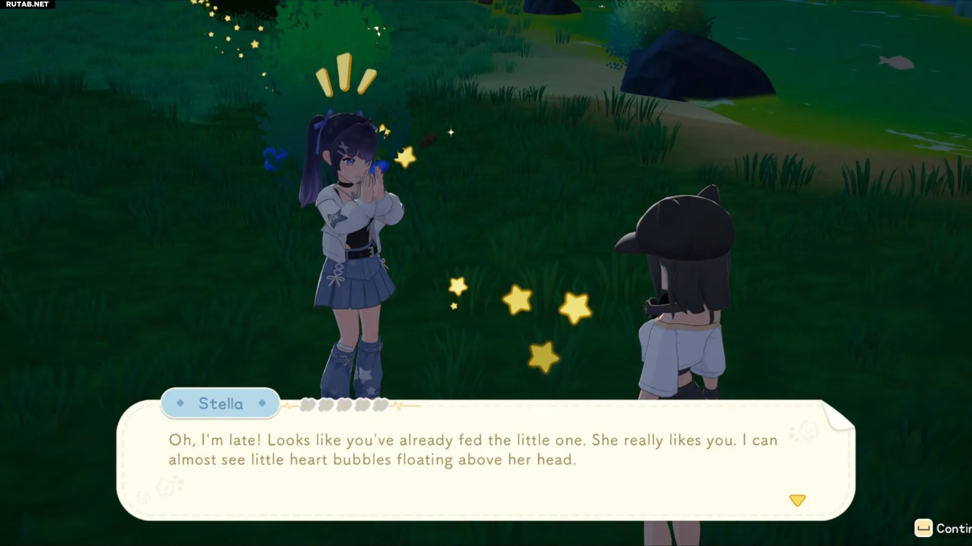 Улов запустит кат-сцену, в которой вы впервые встретите бездомного котёнка. Отдайте пойманную рыбу коту, а затем дождитесь, пока Стелла подойдёт и заговорит с вами о нём. Когда она спросит, не хотите ли вы взять котёнка, обязательно ответьте «конечно».