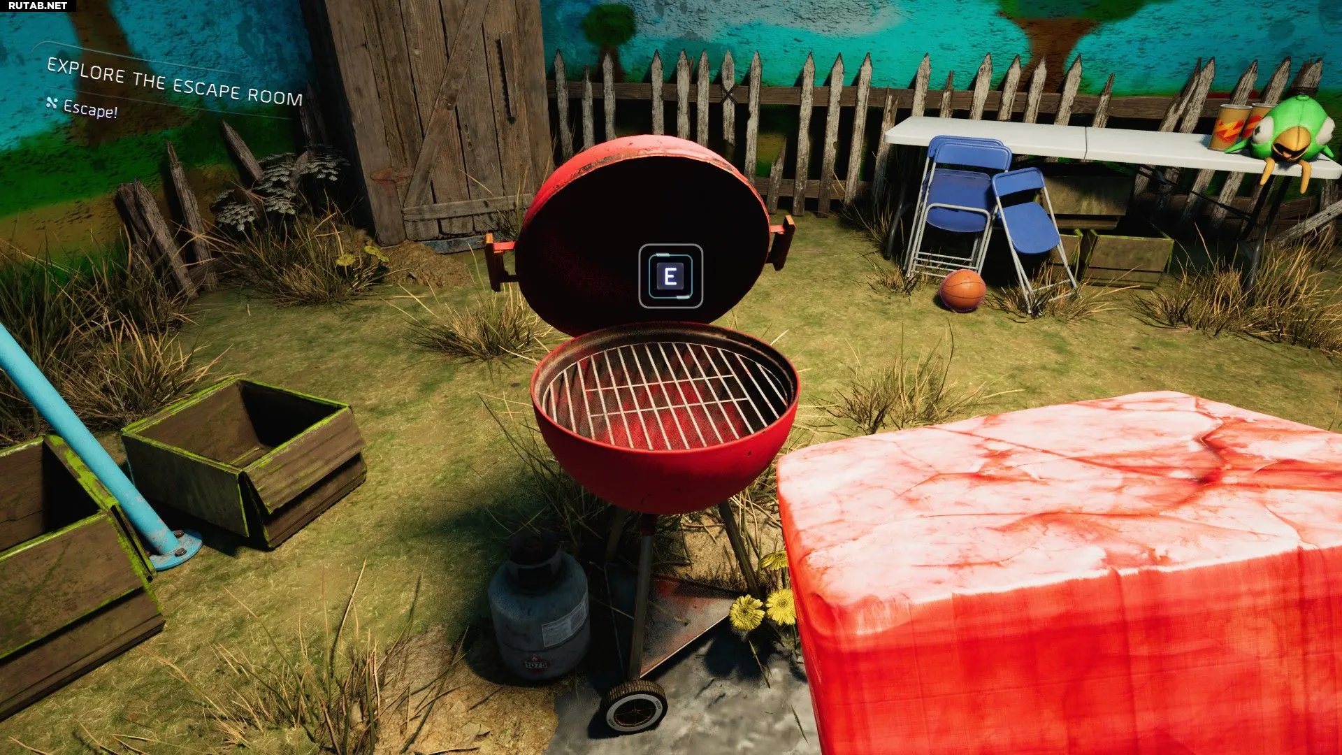 - Подойдите к красному мангалу в центре комнаты и откройте его.
