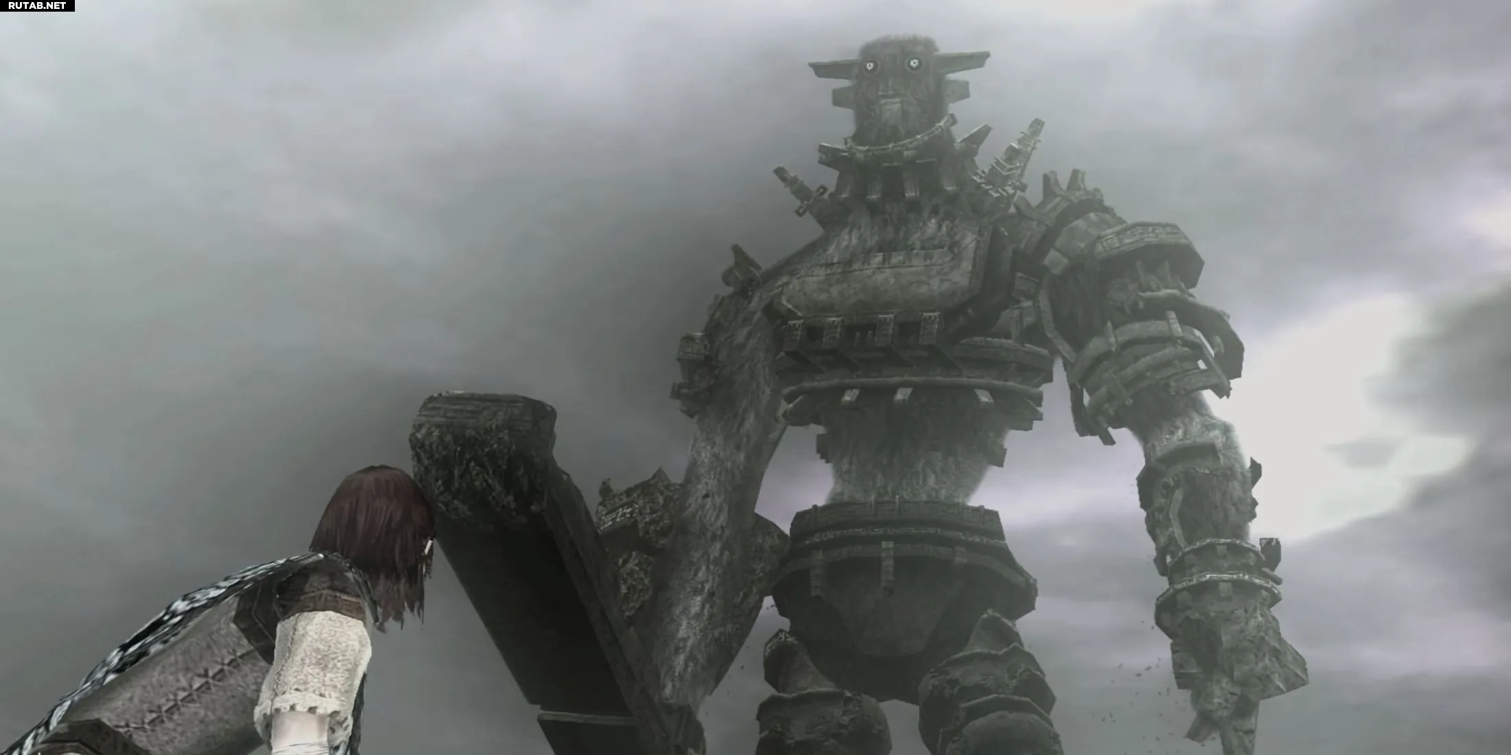 Каждый колосс предлагает уникальное испытание: игрок должен подобраться достаточно близко, чтобы найти его слабое место — светящуюся печать. Некоторых нужно взбираться, крепко держась, чтобы не быть сброшенным. Для других требуется помощь Агро или погружение в глубокую воду. Это сдержанная, меланхоличная игра, вдохновившая множество последователей.