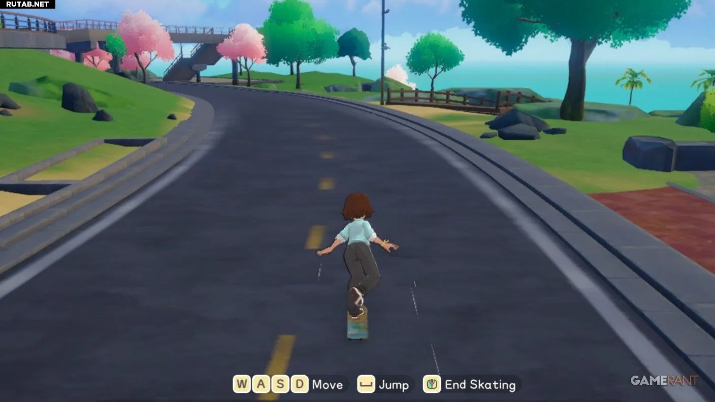 Хотя сложных трюков, как в Tony Hawk's Pro Skater, выполнить не получится, вы можете прыгать, нажимая Пробел. Движение контролируется клавишами W, A, S, D, а угол обзора регулируется мышью. Так вы сможете перепрыгивать через перила, лестницы и даже через других жителей или туристов, если наберёте достаточную высоту.