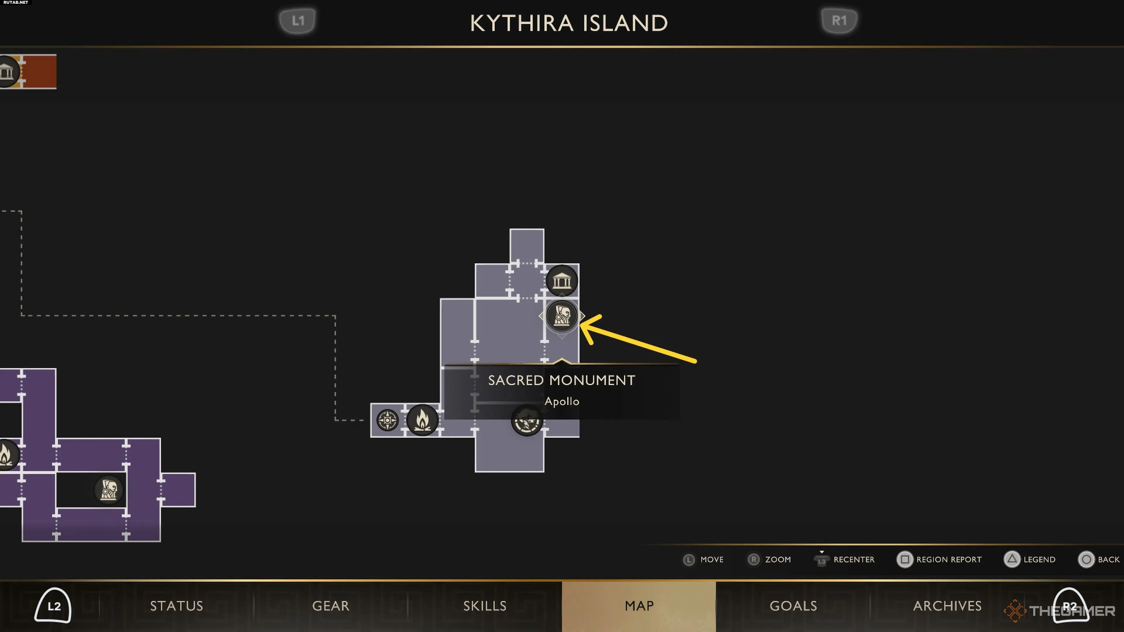 Добравшись до острова, двигайтесь на север, пока не достигнете Священного Монумента Аполлона.