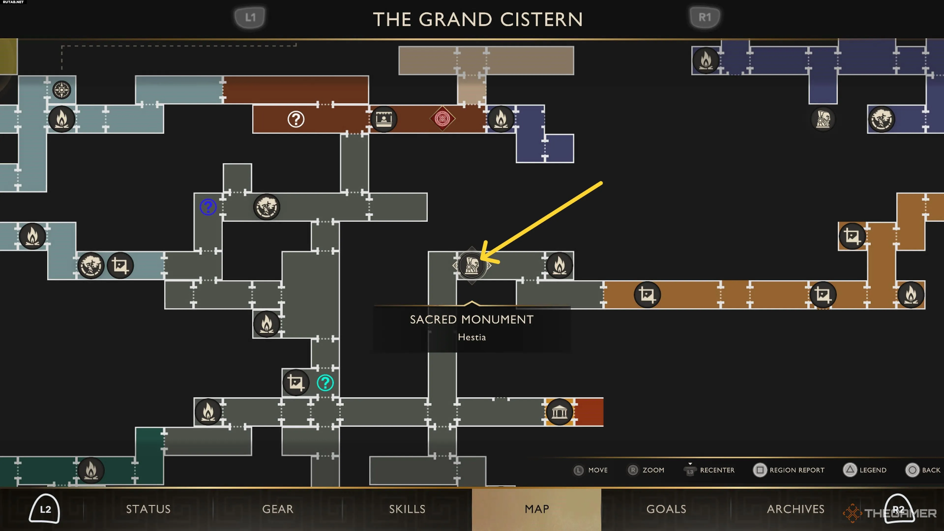 К сожалению, добраться до Священного Монумента, связанного с Гестией, можно лишь пройдя больше половины игры. Как только вы попадёте в Большую Цистерну, направляйтесь на запад от коридора с костром в следующую комнату.