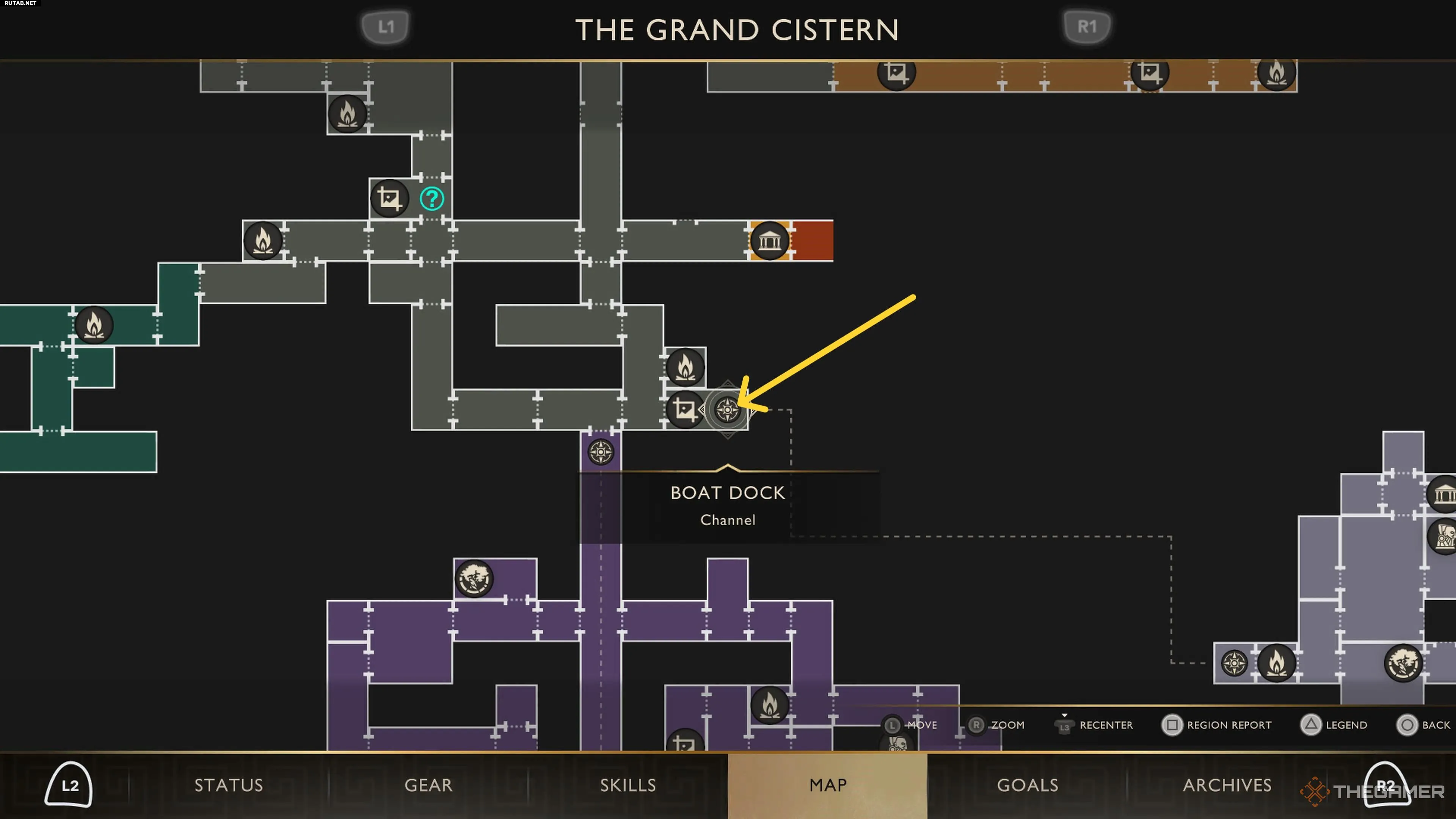 Наконец, имея и улучшенное Вечное Пламя, и улучшенный Серп Жатвы, доберитесь до острова Кихира на лодке из Большой Цистерны (показано выше).