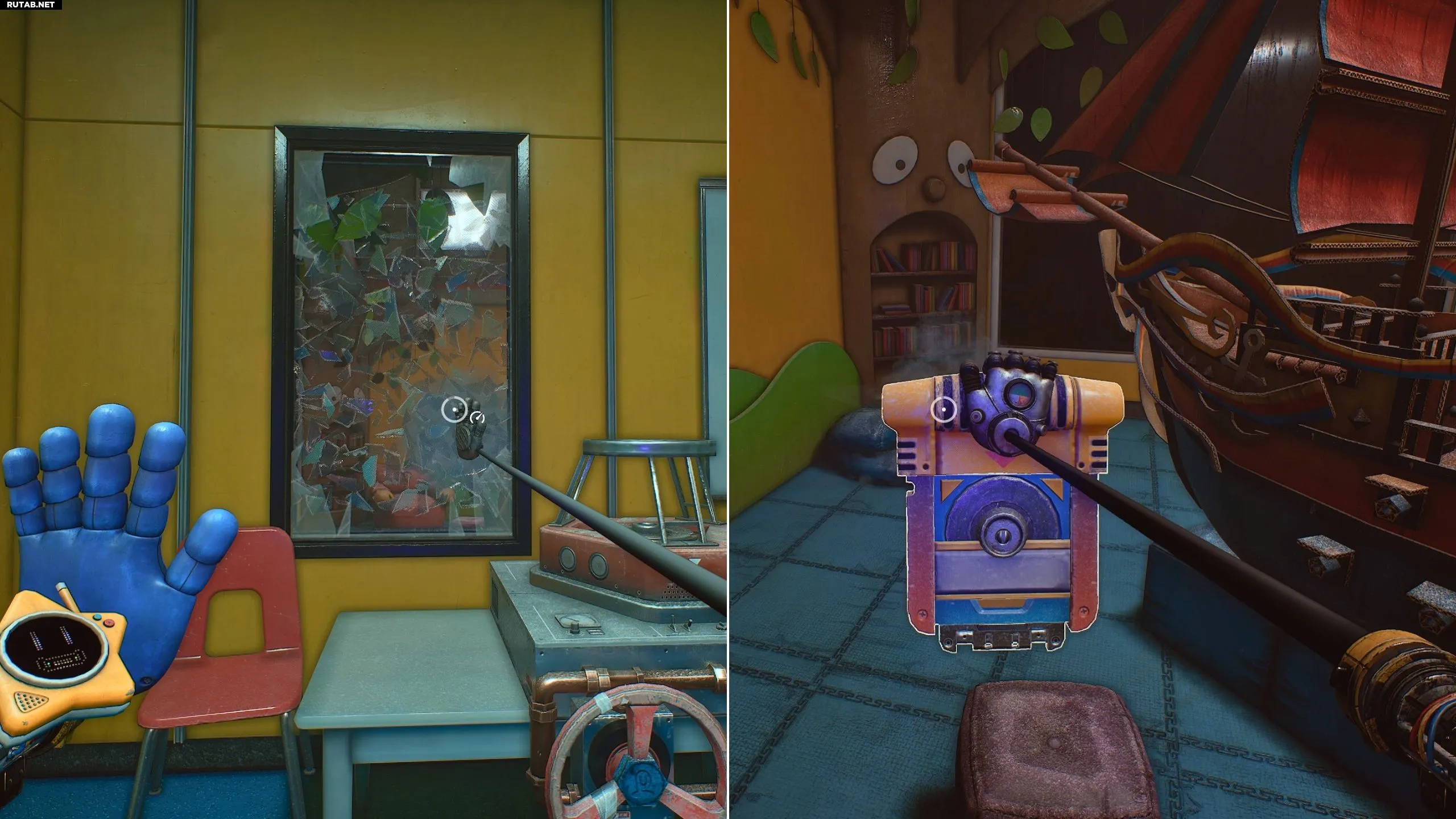Взрыв оставит трещину на заднем окне, которое можно разбить Рукой Давления. Теперь вы сможете попасть в комнату с моделью корабля и забрать второй чип Воспоминания в Poppy Playtime: Глава 5.