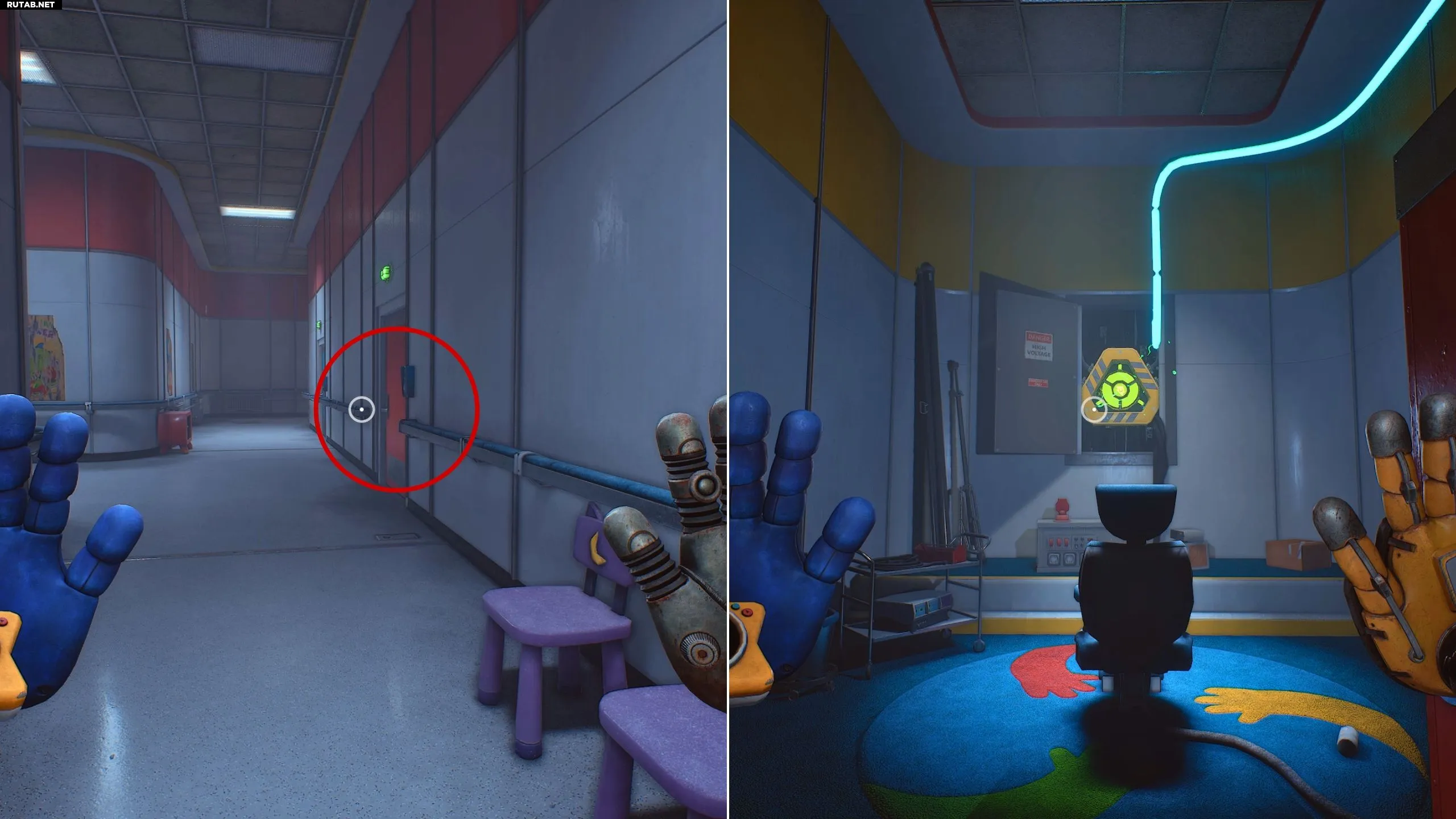 Как только вы пройдёте через синие двойные двери, немедленно поверните налево и идите по левому коридору. Войдите в комнату посередине, чтобы найти электрощиток и зарядить им свою Проводящую Руку.