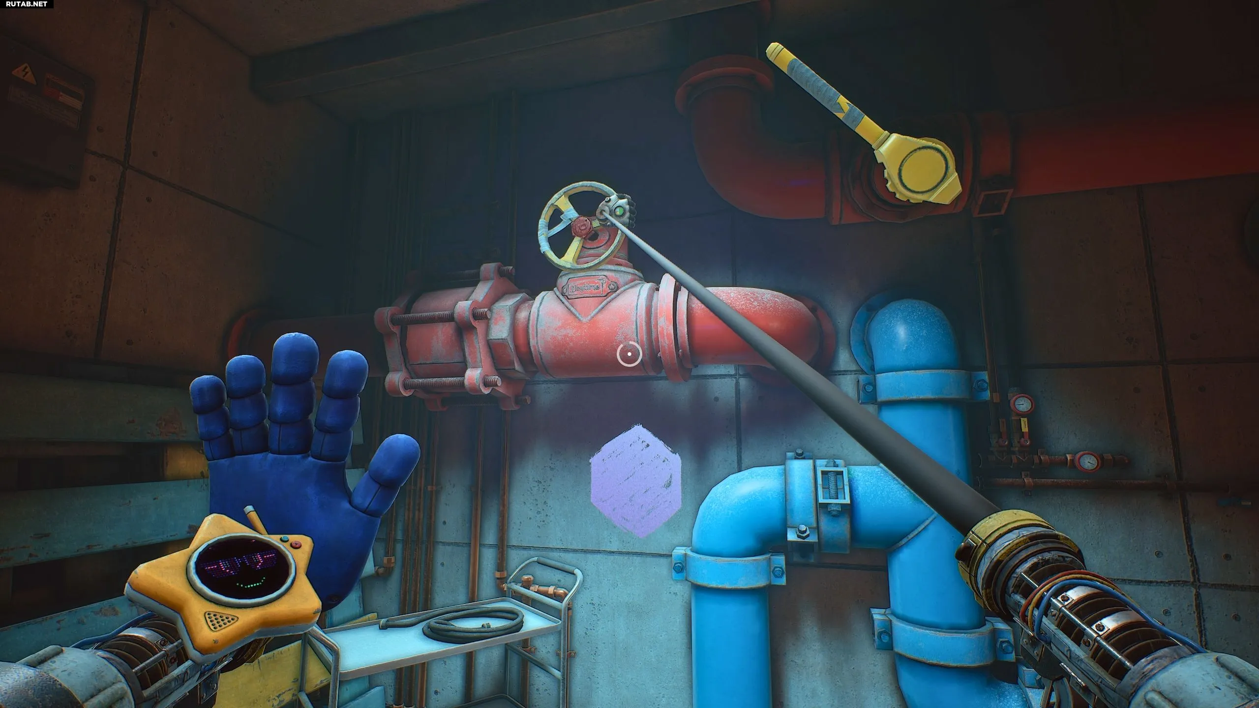 Войдя в комнату, переключите Глоуби в режим черного света и осмотрите красные вентили. Рядом с каждым вентилем нарисована фигура, которая понадобится для решения головоломки.