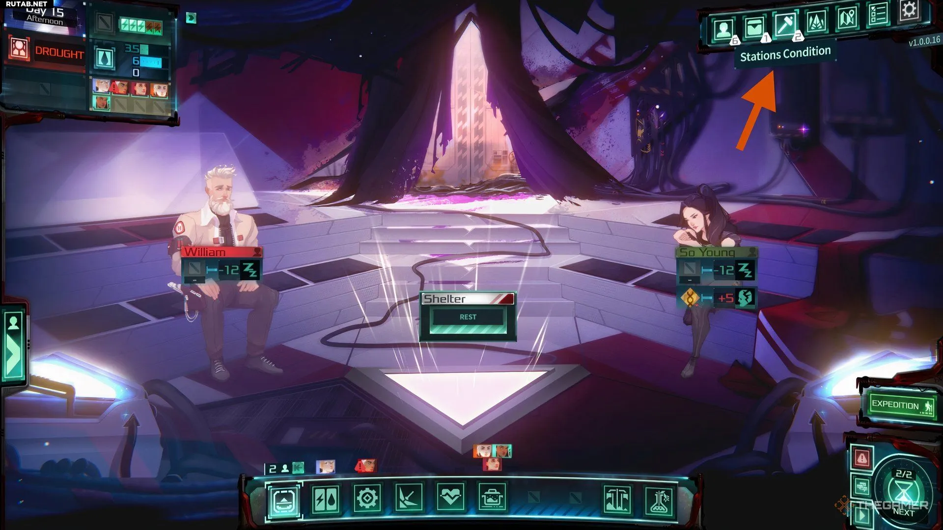 Во время обучения вы получите краткий обзор того, как проверять и ремонтировать станции, но если вы не обратили внимания в первый раз, игра больше не будет направлять вас к этому меню, пока вы не откроете его сами. Более того, об этом легко забыть, когда все мысли заняты выживанием, поэтому вам нужно проявить инициативу и выработать привычку проверять состояние станций в начале каждого дня.