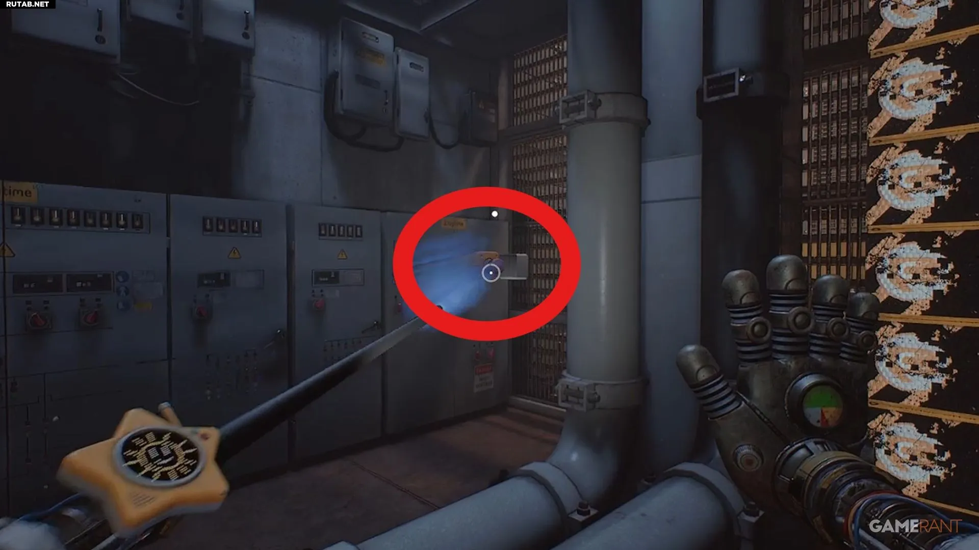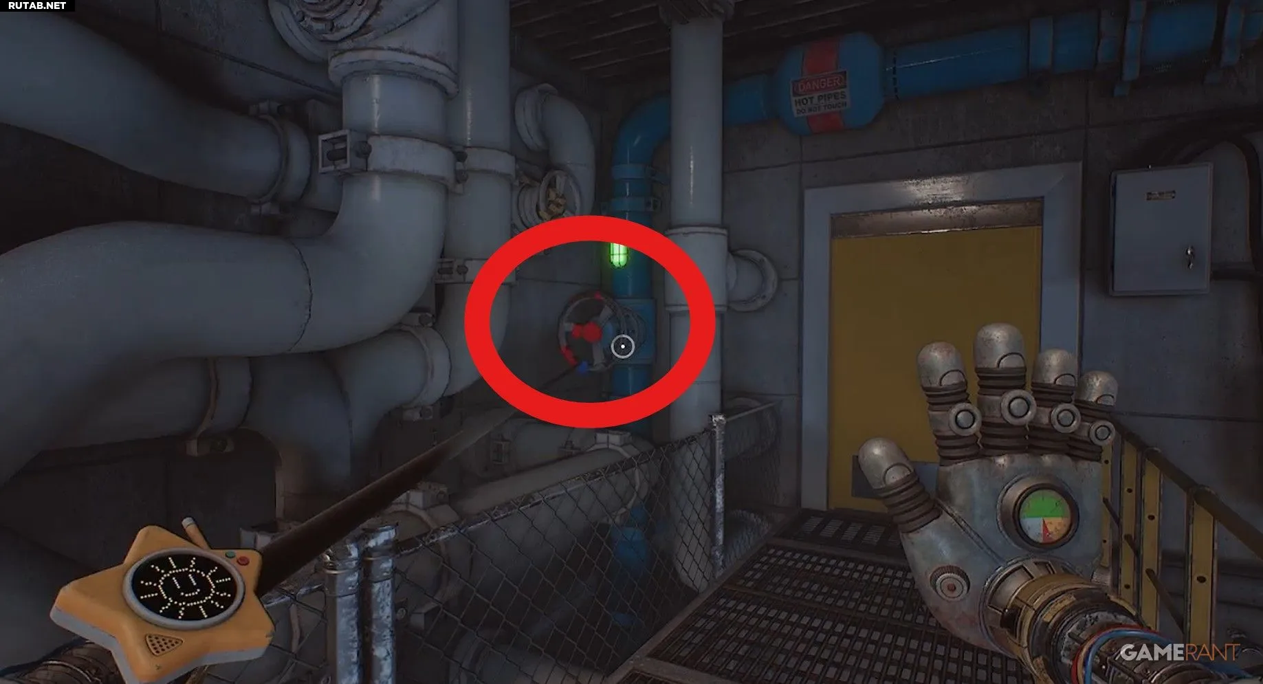 Чтобы открыть секретную комнату (и найти коллекционную вещь) в этой области, запрыгните на проход напротив основных переключателей турбины. Там вы найдёте круглый вентиль, который можно повернуть, рядом с запертой жёлтой дверью.