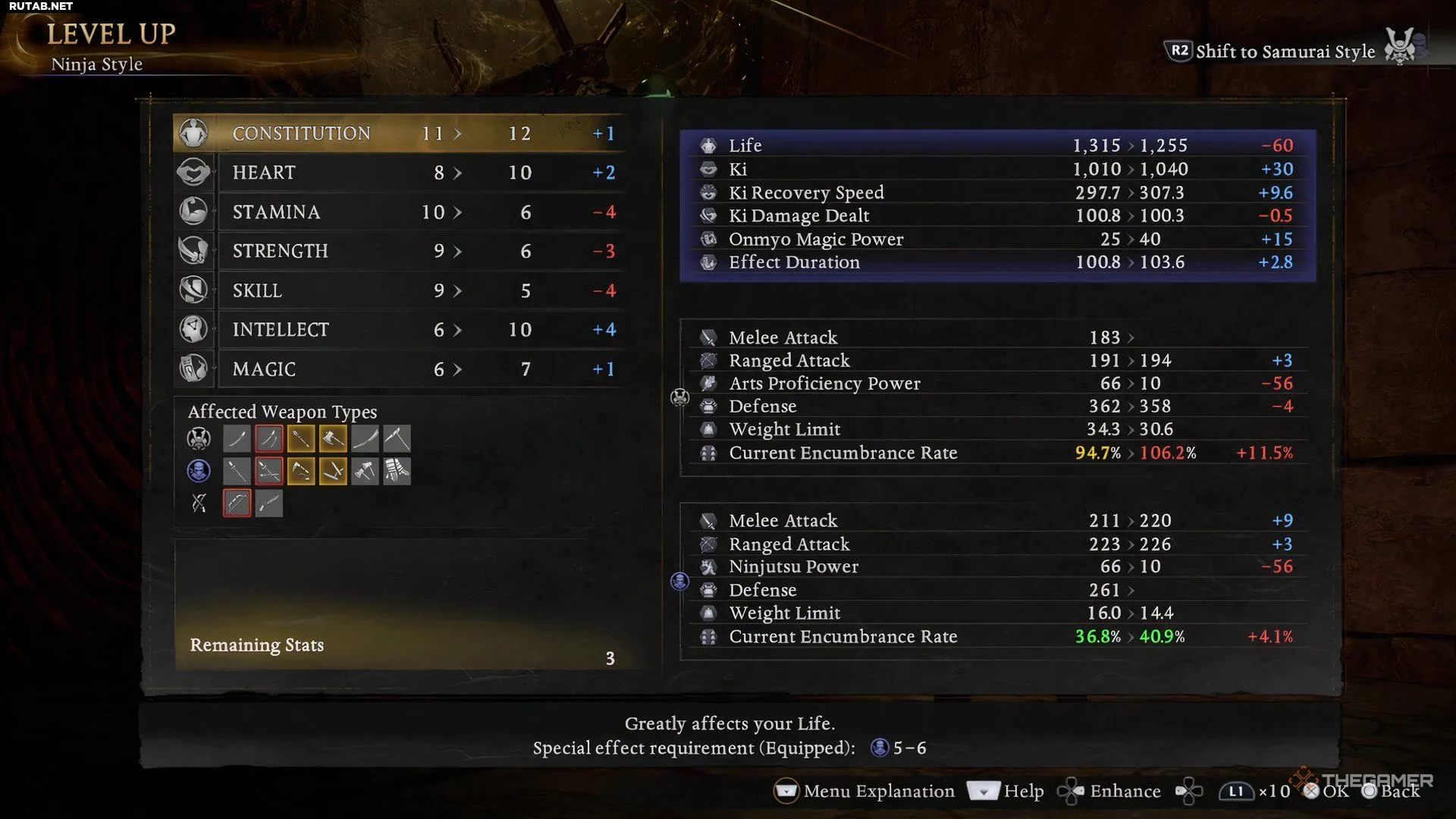 Эффективность ваших парных ниндзя-мечей зависит от Сердца, Интеллекта и Магии, поэтому их стоит прокачивать в первую очередь.