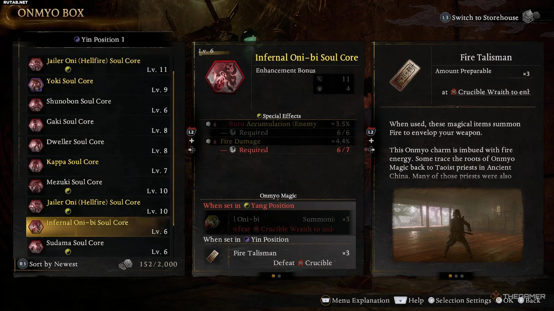 - Ядра душ: Камаитати (позиция Ян), Воин Магацу или Инфернальный О-ниби (позиция Инь).
