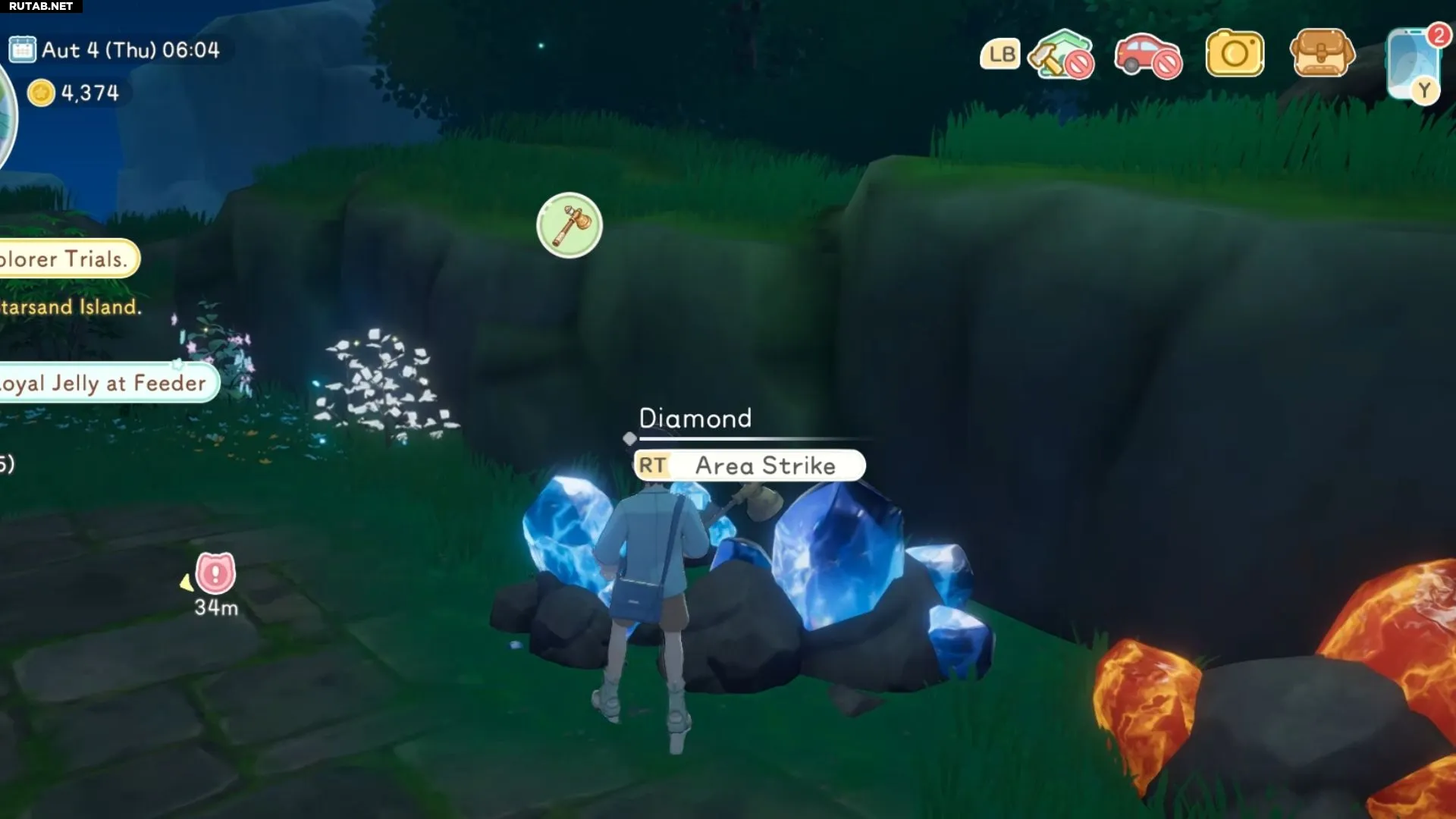 Лучшими местами для фарма алмазов являются «Лунный луг» и «Тропа домой». Однако обе зоны заблокированы за определенными заданиями и требованиями к инструментам. Чтобы получить к ним доступ, нужно выполнять исследовательские квесты Зефирии до тех пор, пока не откроются «Глубины Лунного леса».