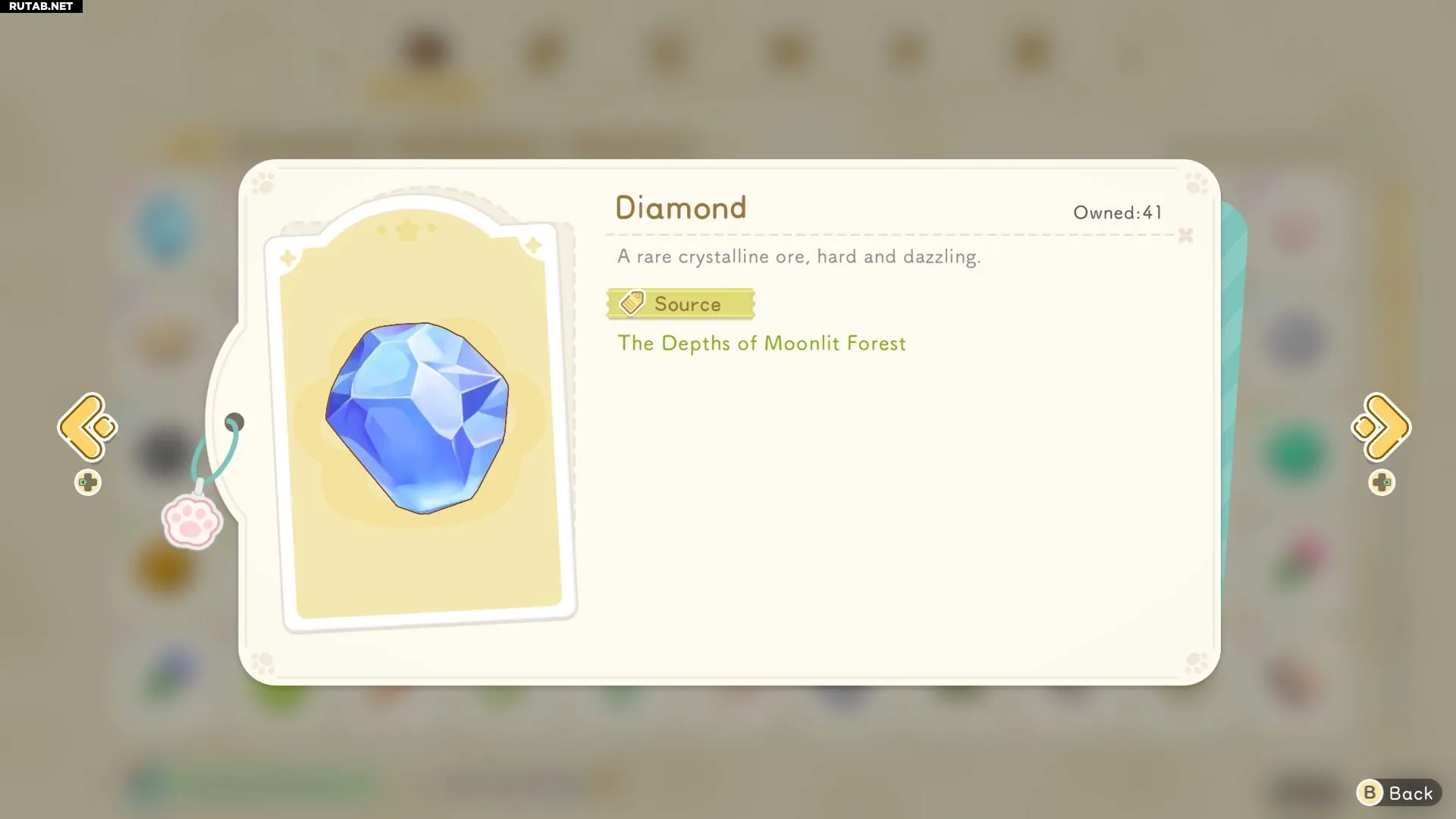 Как особую руду, алмазы могут потребоваться в некоторых рецептах поздней игры. По этой причине игрокам стоит запасаться ими во время исследования Лунного леса и избегать продажи, так как цена в 30 монет за штуку не оправдывает затраченных усилий.