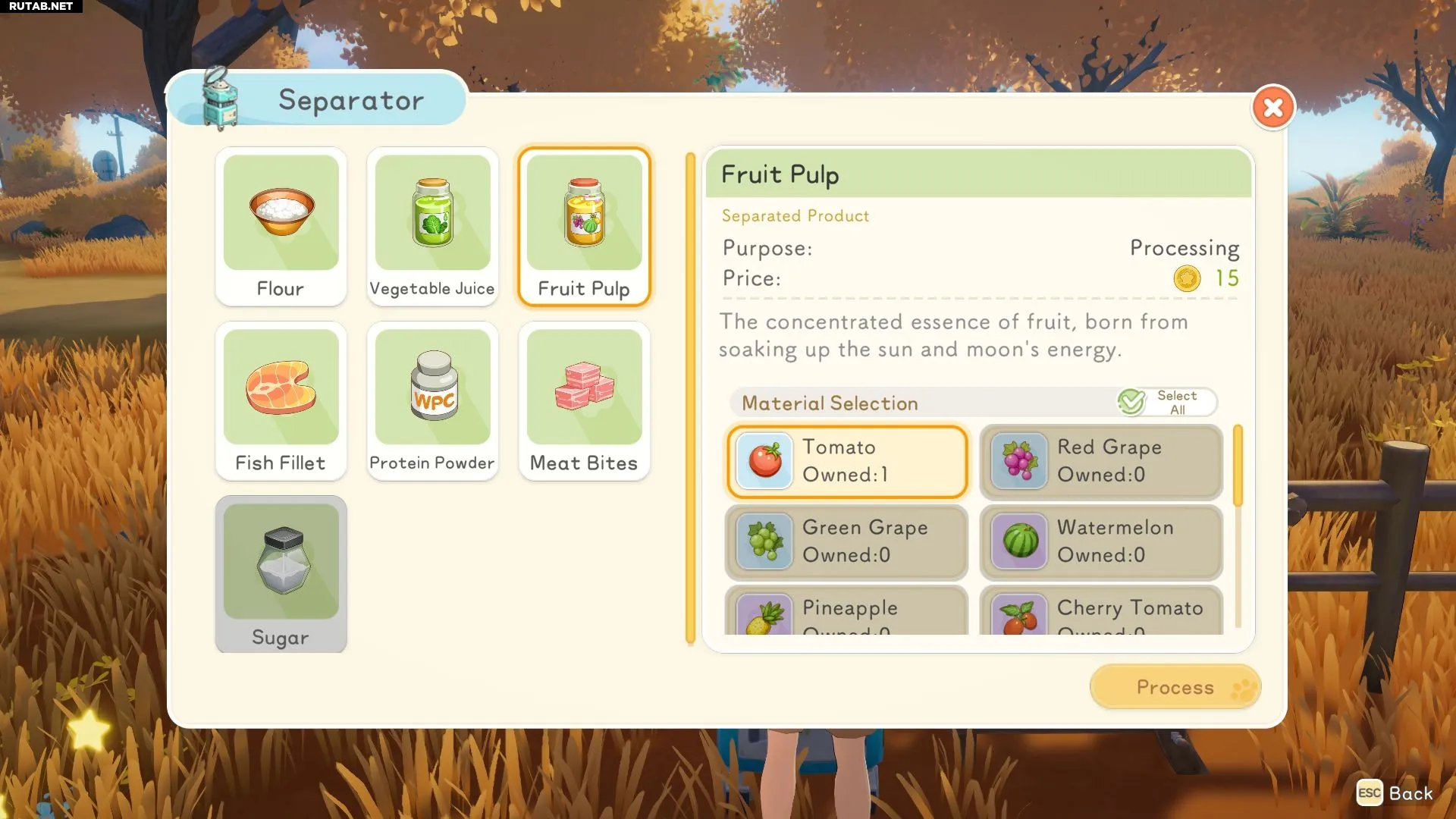 Для производства фруктовой мякоти игрокам необходимо построить Сепаратор. Это устройство доступно с самого начала благодаря бесплатному набору чертежей оборудования от Зерин. Игрокам нужно лишь собрать фрукты и поместить их в Сепаратор, чтобы получить мякоть.