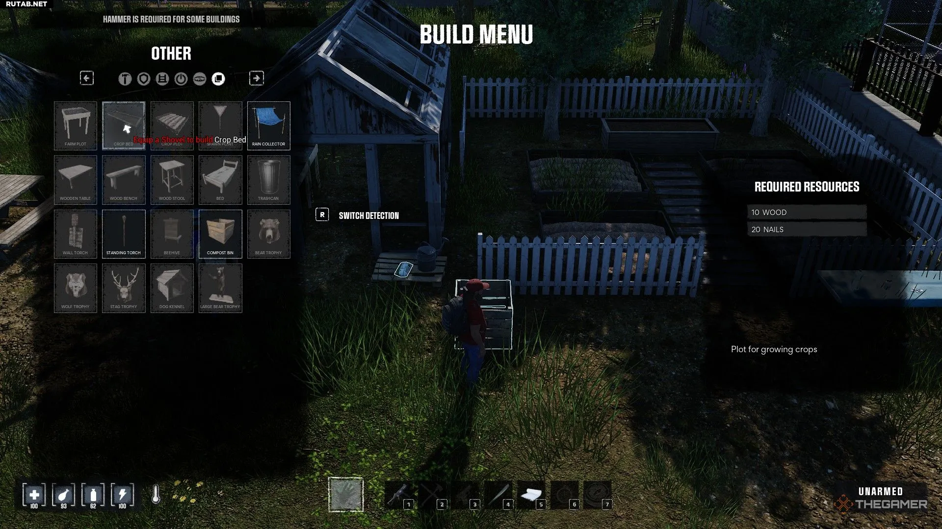 Для постройки грядки (Farm Plot), большой грядки (Crop Bed) или участка (Crop Plot) понадобится лопата и некоторые материалы. К сожалению, найти лопату не так просто, но вы можете создать ее самостоятельно.