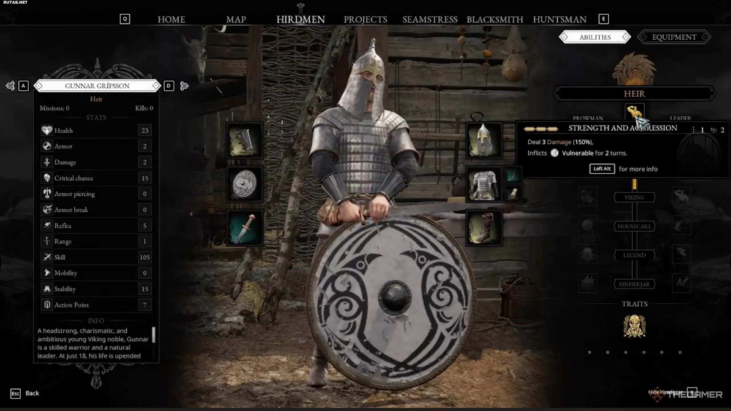 После каждого сражения вы получаете опыт, что в итоге приводит к повышению ранга. Чтобы проверить свой прогресс, добавить новые способности или сменить снаряжение, перейдите во вкладку Хирдмены и выберите нужного бойца.