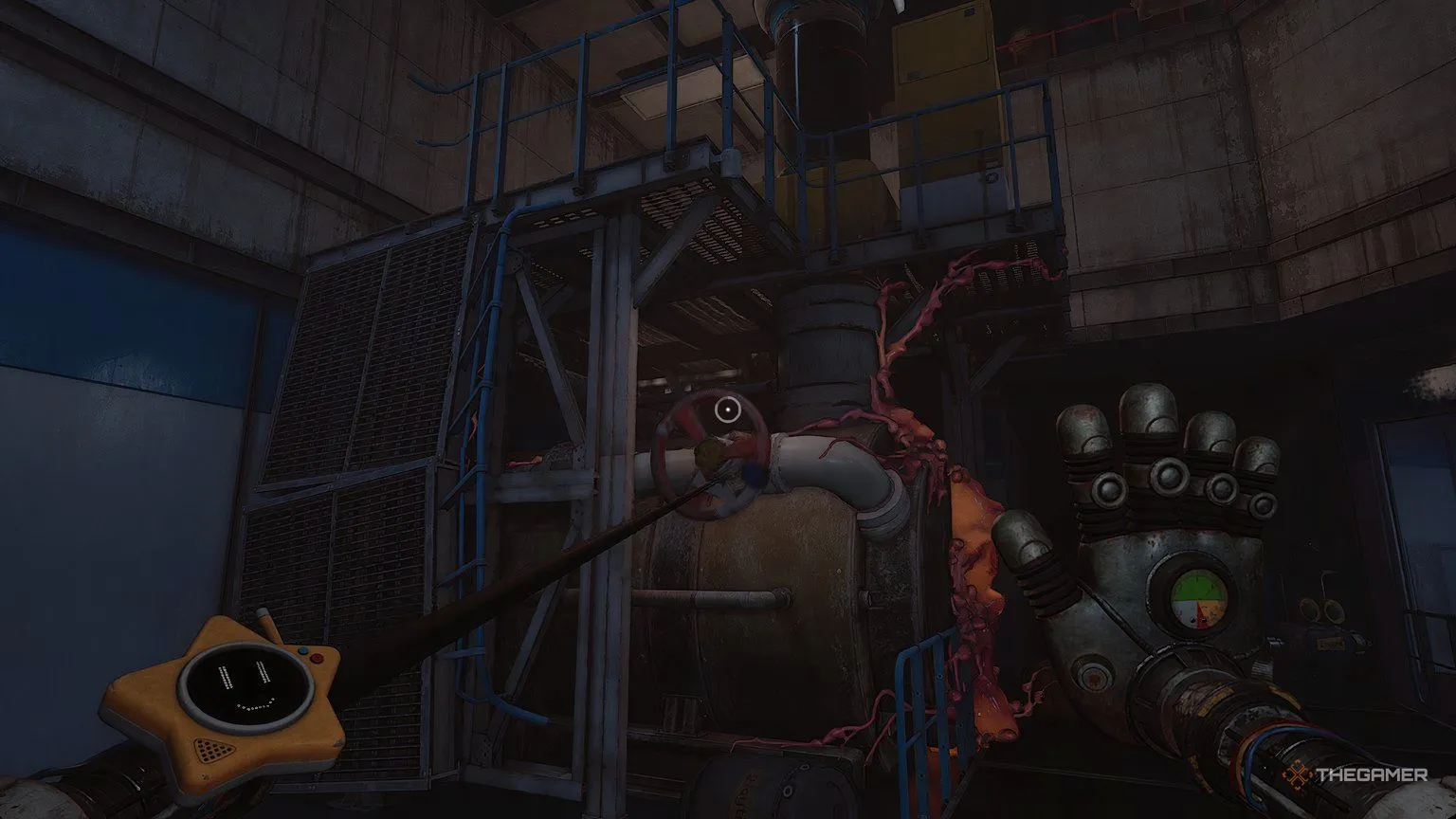 Если ваша рука не прицепится к наросту в центре, значит, вы что-то пропустили в комнате. Когда вы взорвёте большой центральный нарост, в комнате откроется дверь, ведущая в ещё одно биологически опасное помещение, где пройдёт очистка, прежде чем вас выпустят с другой стороны.