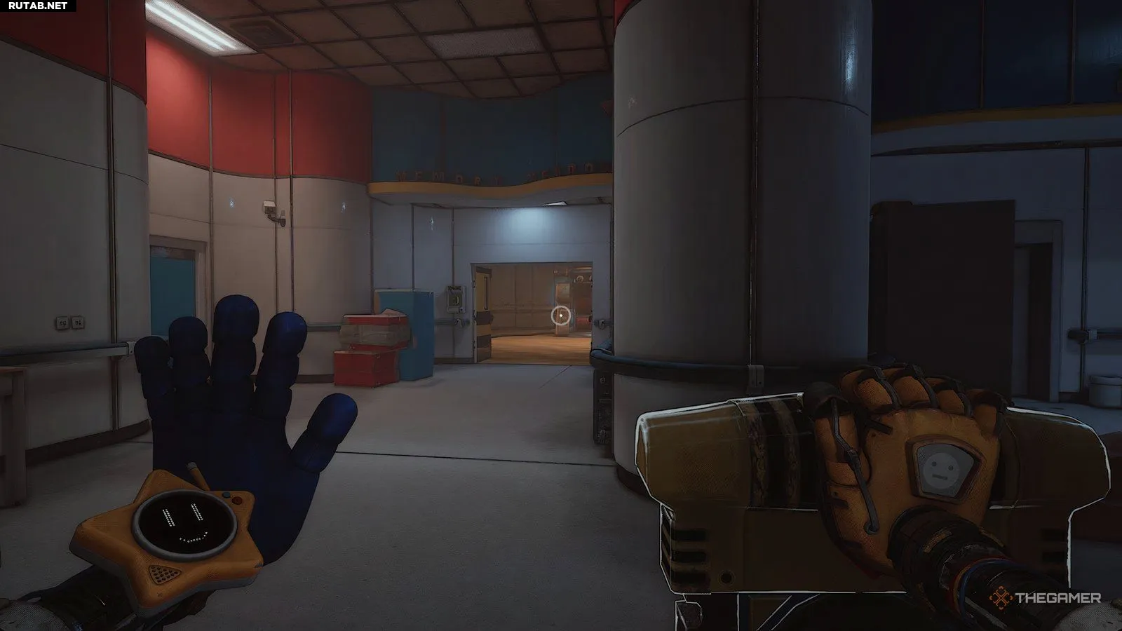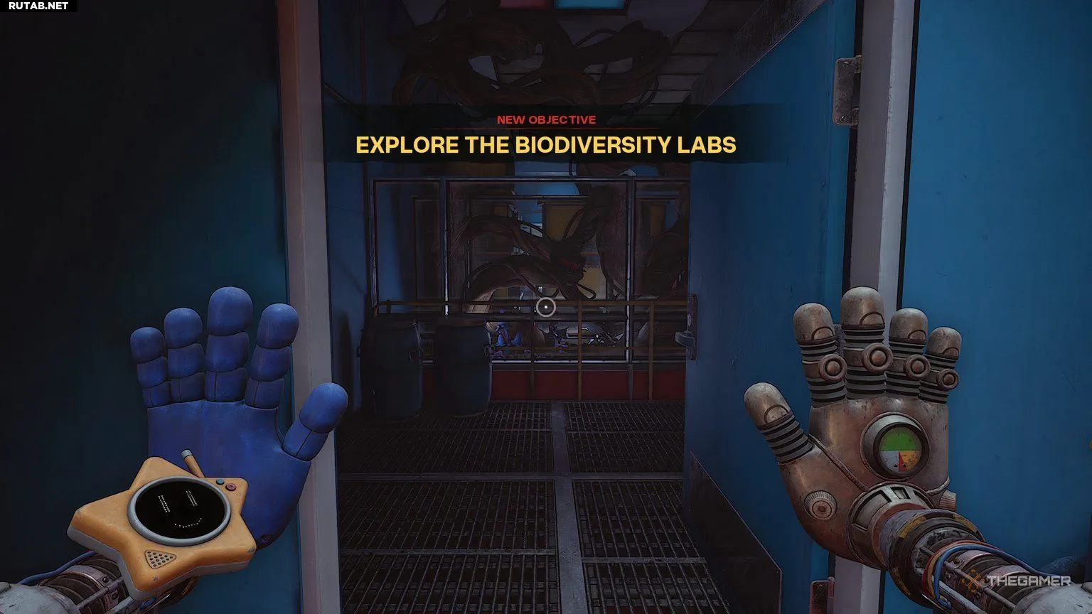 Теперь, когда у вас есть Грабпак, ваша цель снова сменится на «Найдите выход», и вы сможете свободно использовать свои руки. Прежде чем что-либо делать, вернитесь в коридор, через который пришли, и войдите в одну из дверей в этом коридоре.