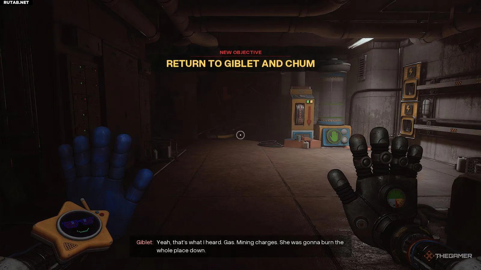 После разговора с Гиблетом вы получите новую задачу «Найдите Грабпак», которая приведёт вас в котельную. Но прежде чем начать, подберите записки в убежище Гиблета. Одна лежит на кровати прямо напротив него, а другая — на верстаке в основной части комнаты.