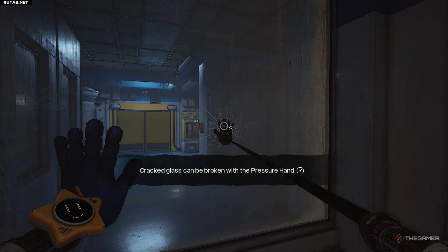 доберётесь до зоны со сканером отпечатка ладони. Если вы подойдёте слишком близко, то не сможете отсканировать руку, так как стекло разбито только в одном месте. Поэтому убедитесь, что вы прицелились так, чтобы ваша рука прошла через большую дыру в стекле и попала на сканер.
