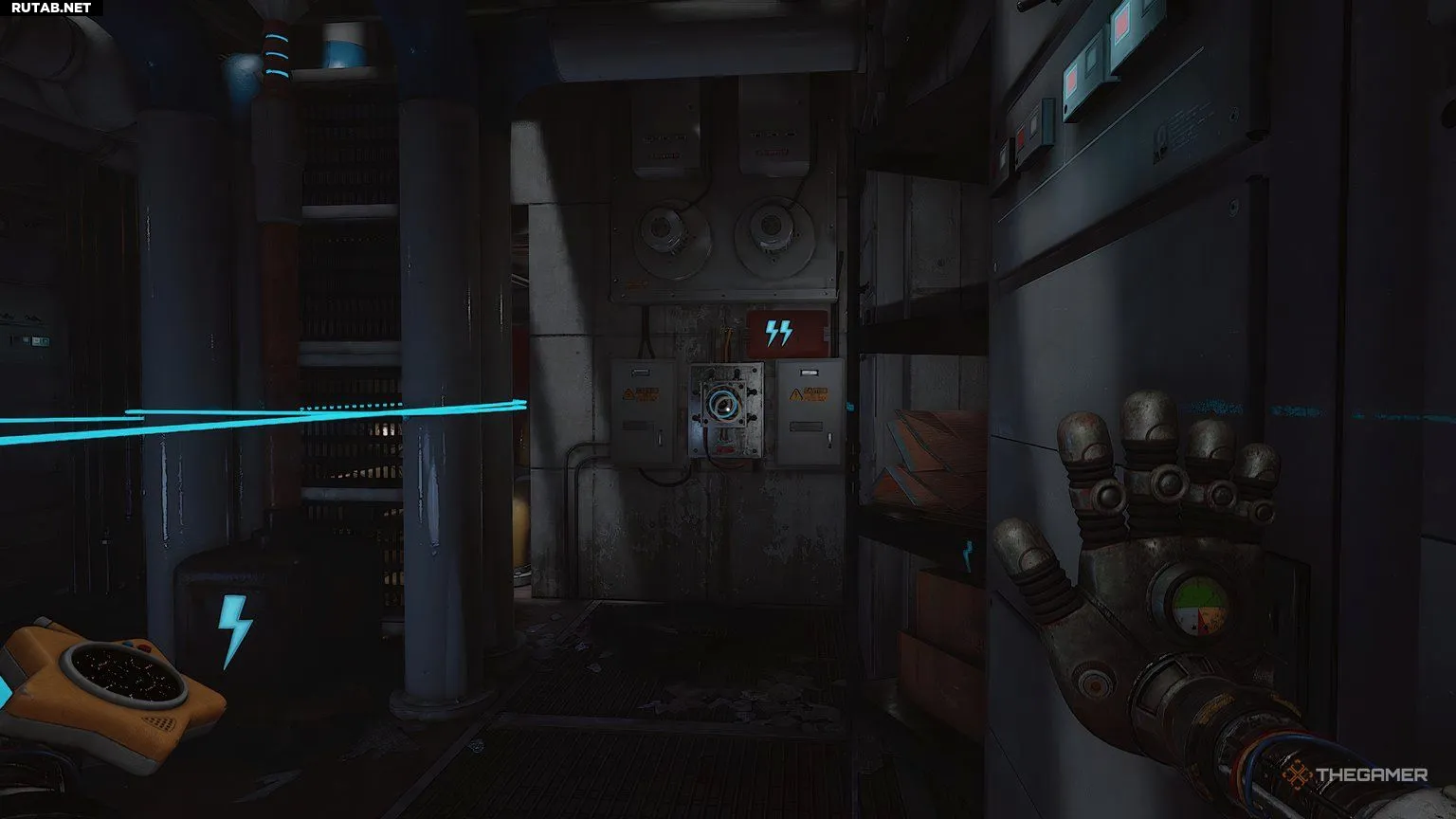 В этой комнате вам нужно снова восстановить подачу энергии. На стене есть три индикатора, и все они должны загореться, чтобы питание включилось. Это своего рода задание на скорость, поэтому первое, что вам нужно сделать, это: