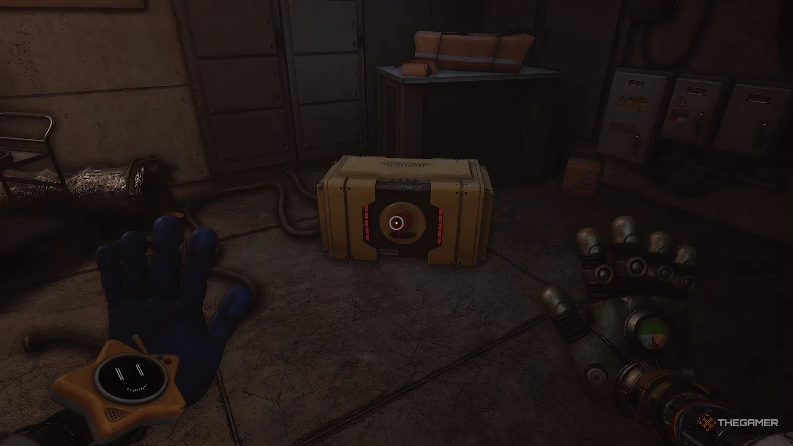 Когда найдёте свой ящик, посмотрите на красный номер, напечатанный на нём. Это и есть код, который нужно ввести на клавиатуре. Это откроет средний шкафчик, содержащий некоторые необходимые предметы, и запустит следующую цель.