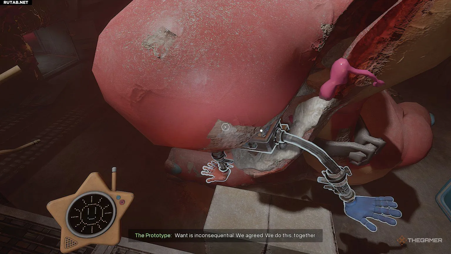 После этого он попросит вас следовать за ним, пока вас не затянет в ещё одну короткую сцену, где Прототип придёт вас искать. Как только он уйдёт и Гиблет даст отмашку, вы снова пойдёте за ним, но на этот раз он приведёт вас в своё маленькое убежище.