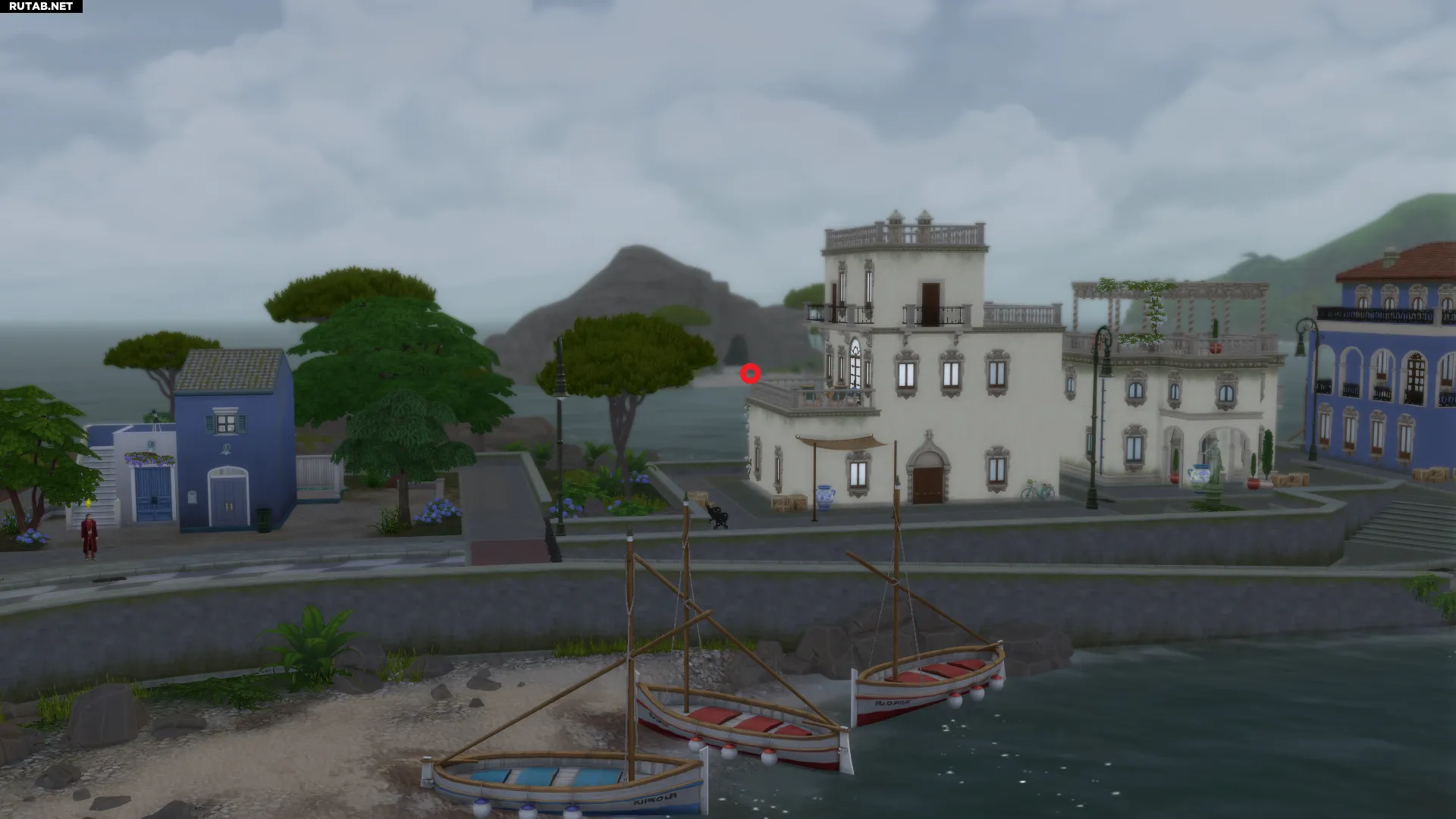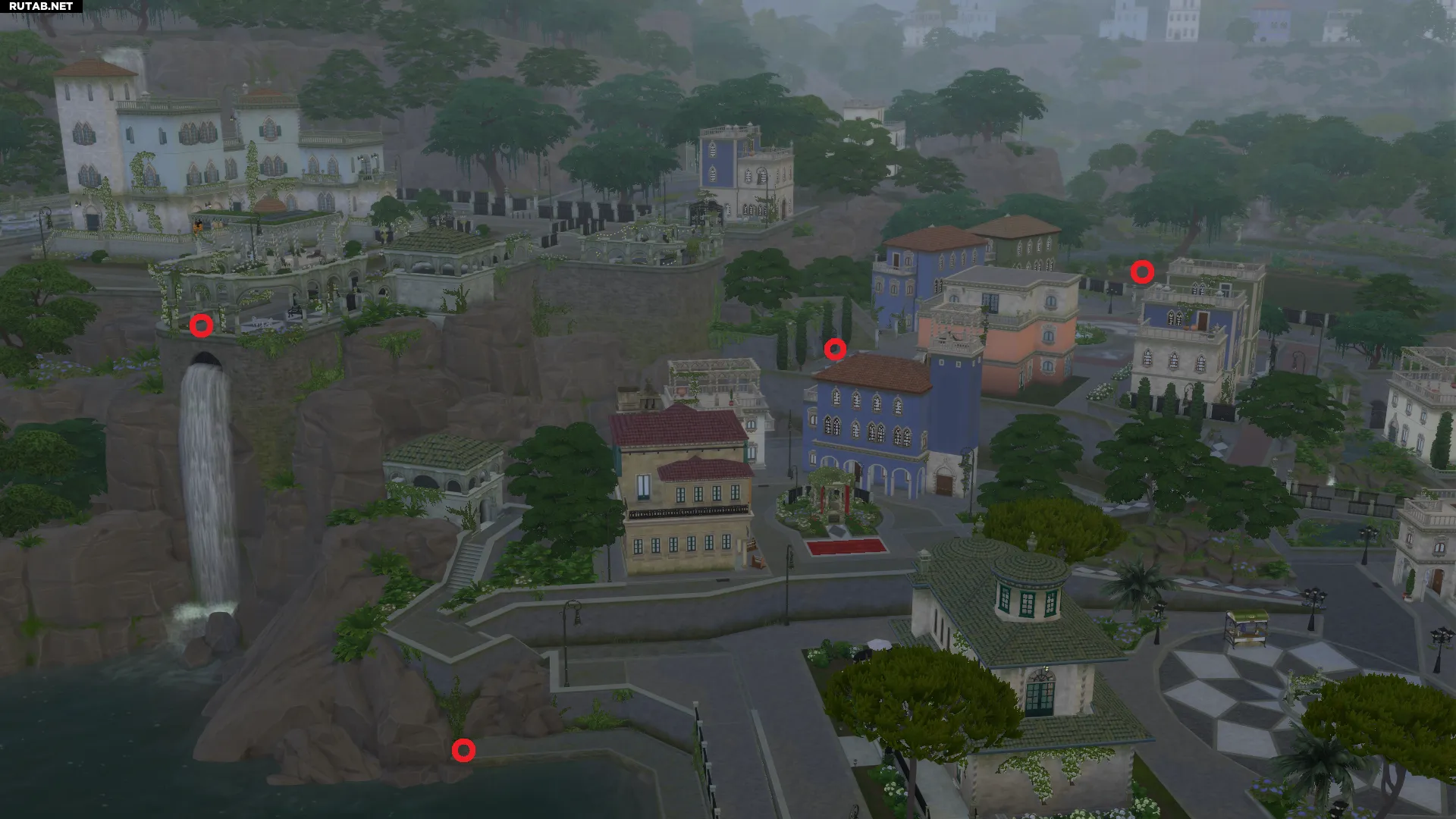 - Точка 2: В дальнем правом углу района, за доком и пляжем, у одинокой скамейки.