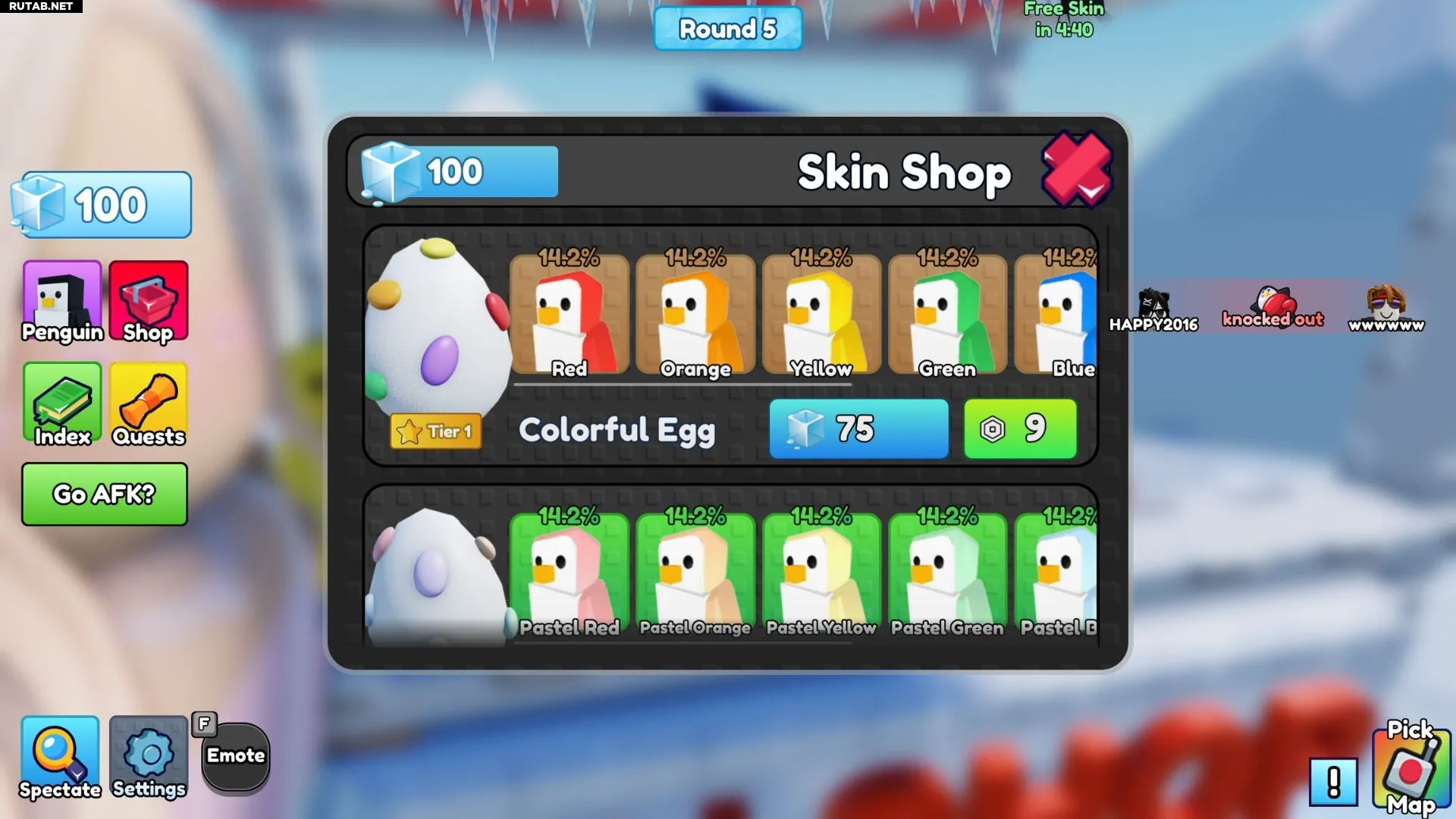 Вы получаете 20 Льда за каждый нокаут противника и 80 Льда за победу в раунде. Поднимайтесь по дивизионам за бонусы, крутите ежедневное колесо и активируйте коды. Таким образом, вы быстро накопите Лёд и получите все скины, которые выпадают из яиц.