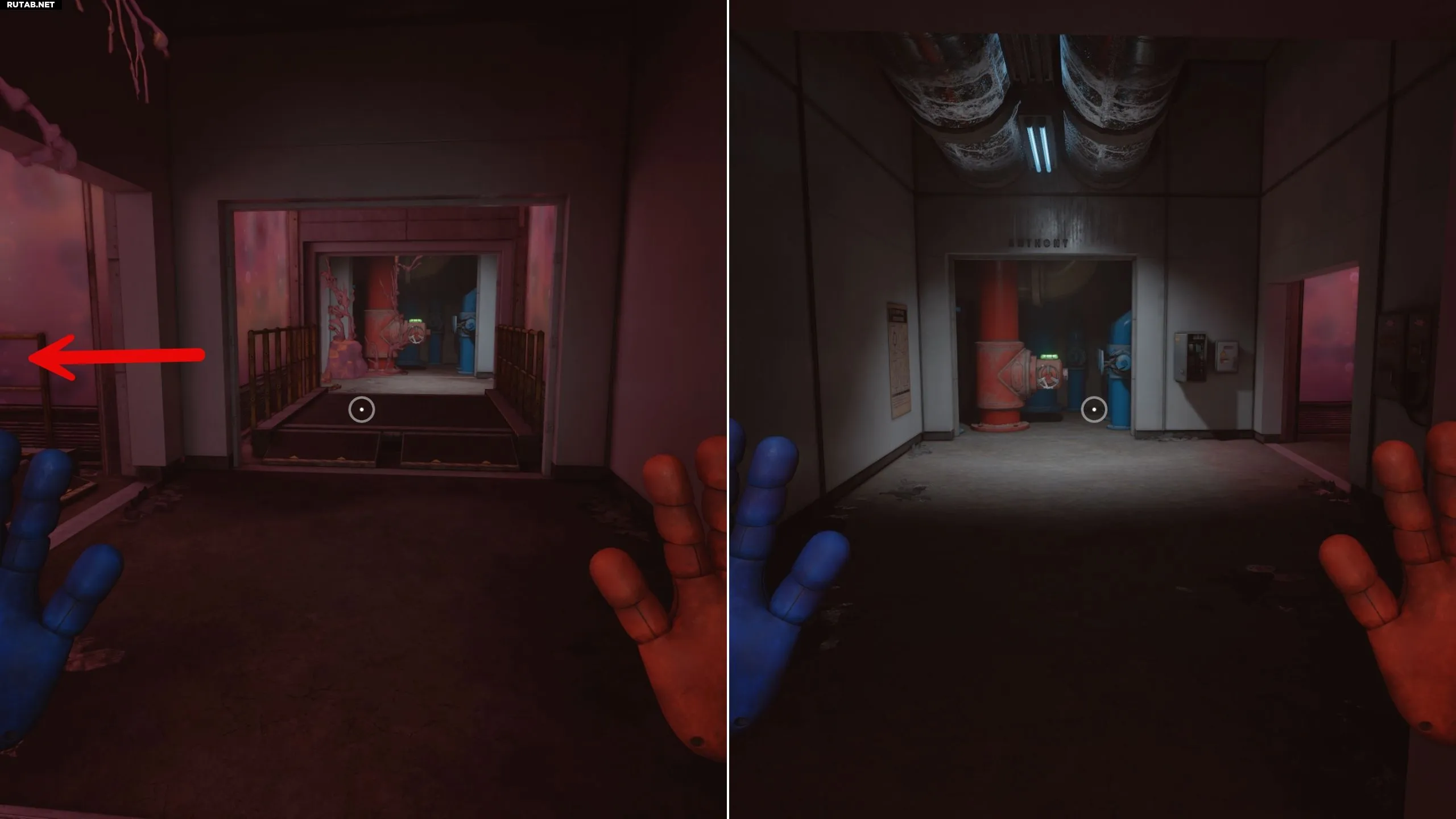 Идите по коридору вперёд. Вы увидите вентиль прямо по курсу, но пока проигнорируйте его для простоты навигации. Вместо этого сверните налево и пройдите через двери, покрытые гелем Поппи. Здесь вы активируете вентиль Энтони.