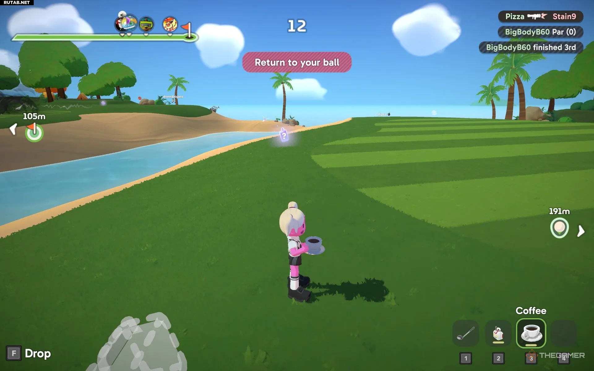 Такие предметы, как Пружинные Ботинки и Кофе, могут выглядеть невзрачно, но они дают преимущество, помогая достичь лунки быстрее соперников. Быть впереди толпы — большое дело, особенно в хаотичных забегах, где важна каждая секунда.