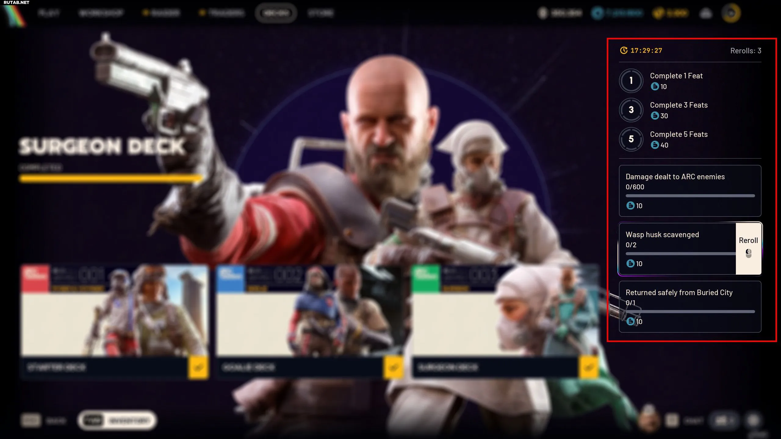 Активные подвиги можно посмотреть во вкладке «Колоды». С обновлением «Shrouded Sky» задания теперь можно перебрасывать до трёх раз в день, что упрощает фарм Cred. Кроме того, за выполнение одного, трёх и пяти подвигов в день даются бонусные Cred. Удачи в бою, рейдеры!
