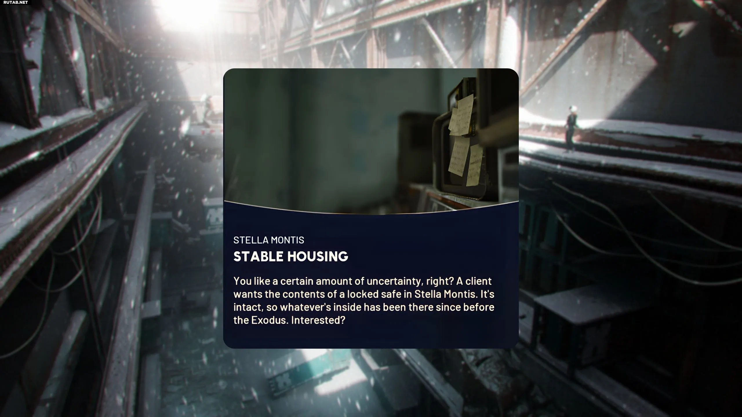 Начните квест «Стабильное жильё» и отправляйтесь на локацию Стелла Монтис. Поскольку задание требует доставить предмет в Сперанцу, вы можете зайти в матч без снаряжения. Это даст вам «Безопасный карман» и убережёт ваши вещи в случае поражения в PvP.