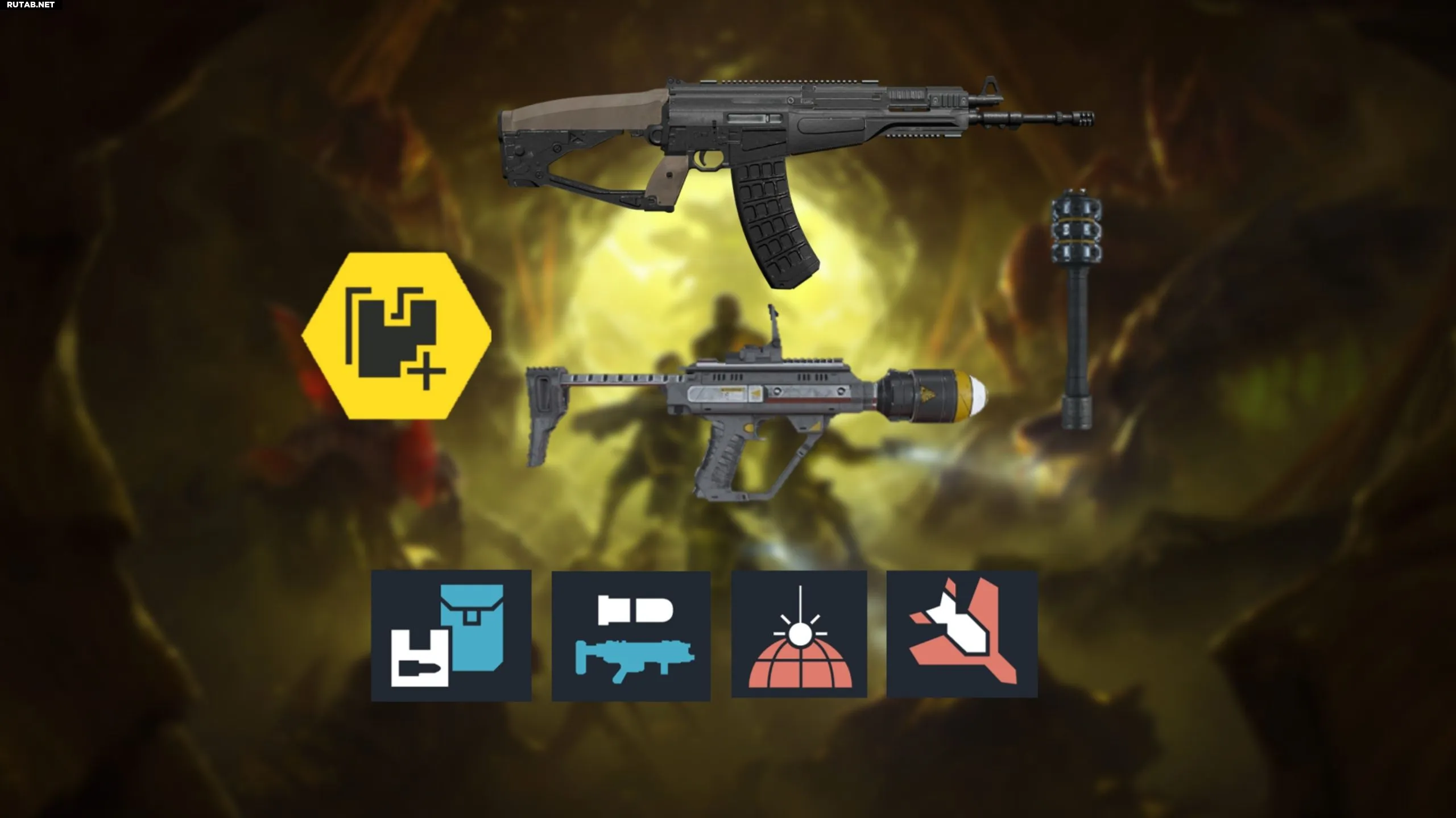 - Стратагема 1: Гранатомёт — Отличное вспомогательное оружие с большим запасом патронов. После усиления его снаряды пробивают тяжёлую броню. Он полезен для зачистки орд благодаря взрывному урону по площади и для мгновенного уничтожения гнёзд жуков.