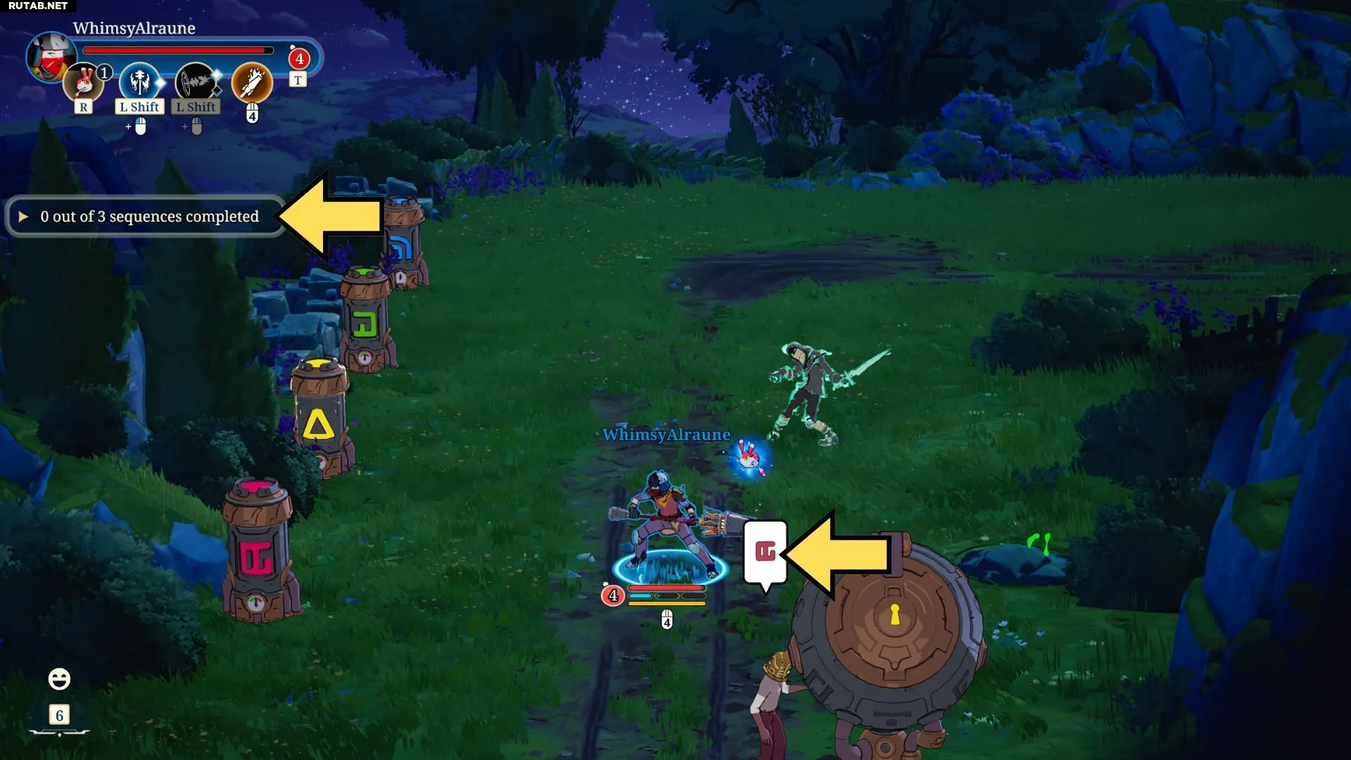 Когда Энтузиаст зачитывает последовательность, символы будут появляться над его головой по одному. Вы можете бить по бочкам сразу или подождать, пока последовательность не будет полностью озвучена.
