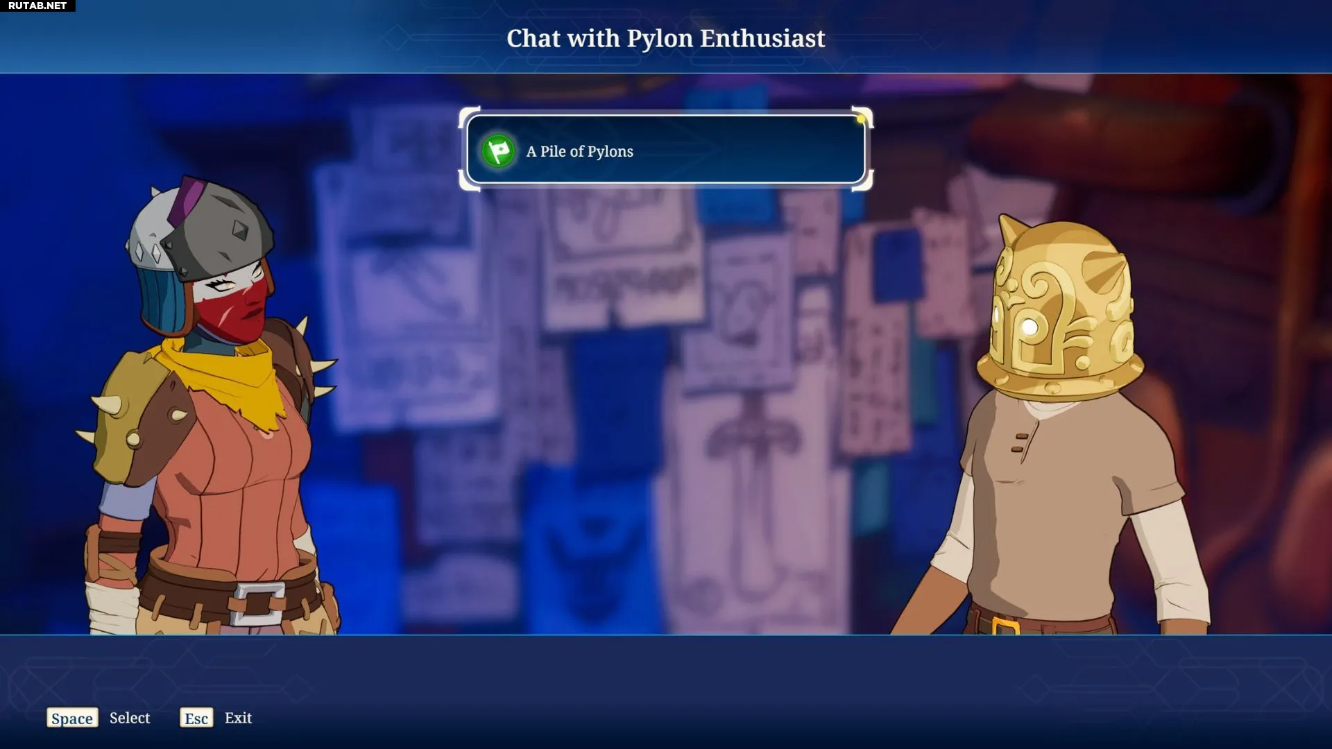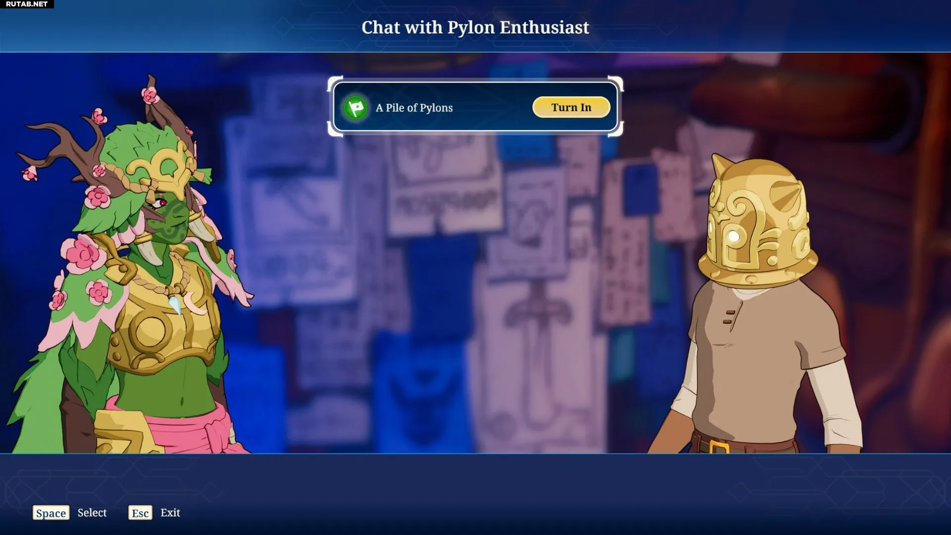 Поговорите с Энтузиастом пилонов о квесте «Груда пилонов», чтобы принять его.