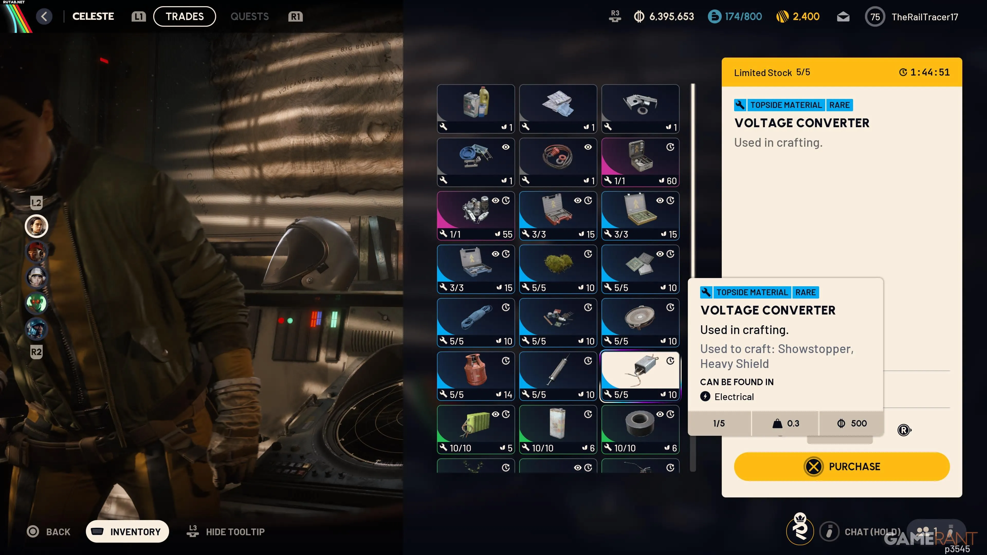 Чтобы получить преобразователи напряжения, можно перейти во вкладку «Торговцы» и поговорить с Селестой, которая продаёт их по 10 семян за штуку. У неё есть запас в 5 штук, который обновляется ежедневно. Если вы не хотите тратить 50 семян ежедневно, приготовьтесь к вылазке. Используйте кастомную или бесплатную экипировку и выберите карту «Синие Врата».